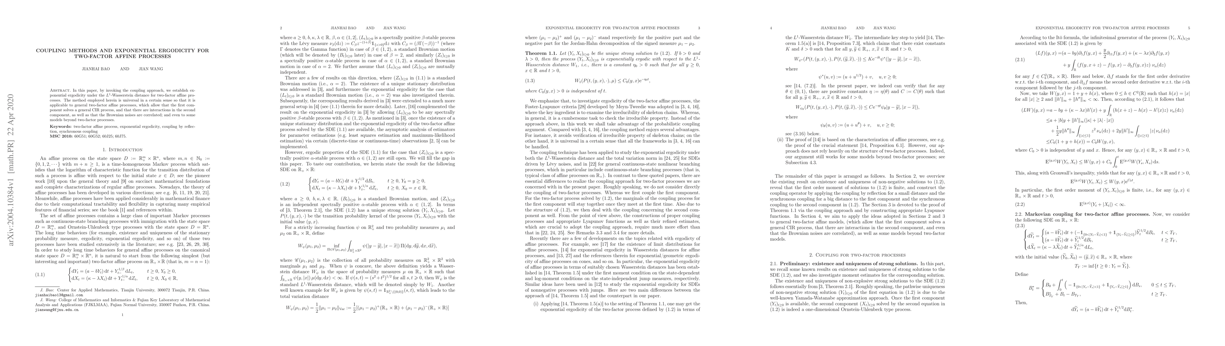 In this paper, by invoking the coupling approach, we establish exponential ergodicity under the $L^1 $-Wasserstein distance for two-factor affine processes. The method employed herein is universal in a certain sense so that it is applicable to general two-factor affine processes, which allow that the first component solves a general CIR process, and that there are interactions in the second component, as well as that the Brownian noises are correlated; and even to some models beyond two-factor processes.