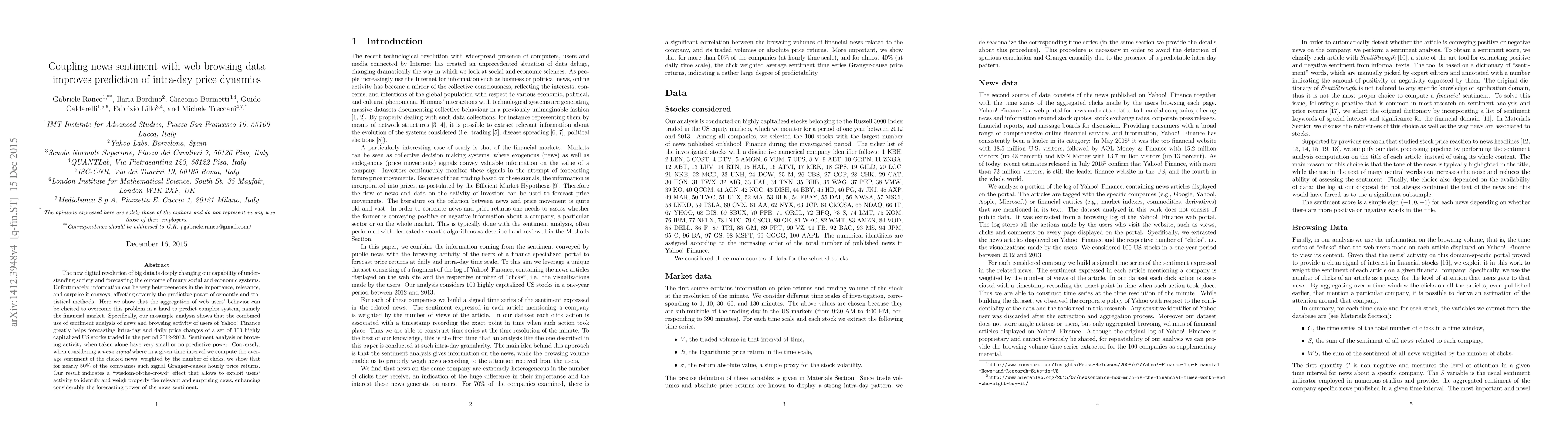 This paper demonstrates that combining sentiment analysis of news with web browsing data from Yahoo! Finance significantly improves the prediction of intra-day and daily price changes for major US stocks. The study finds that neither sentiment analysis nor browsing activity alone has strong predictive power, but their combined use reveals a "wisdom-of-the-crowd" effect, enhancing forecasting accuracy.