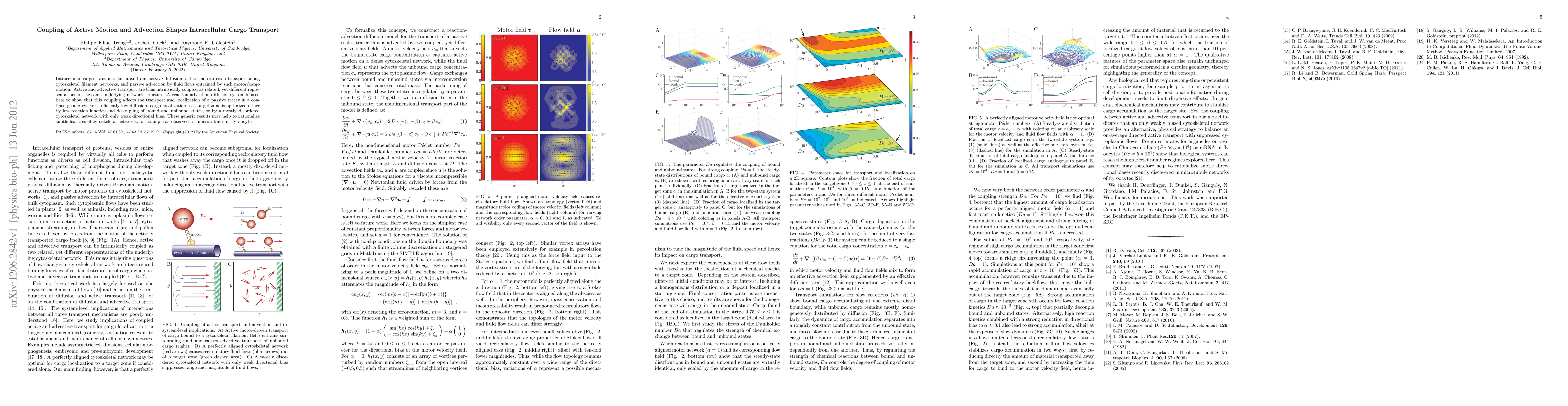 This paper investigates how the coupling of active motor-driven transport and passive advection by fluid flows shapes intracellular cargo transport. The study finds that optimal cargo localization in a confined space is achieved through low reaction kinetics and network disorder, providing insights into cytoskeletal network dynamics.