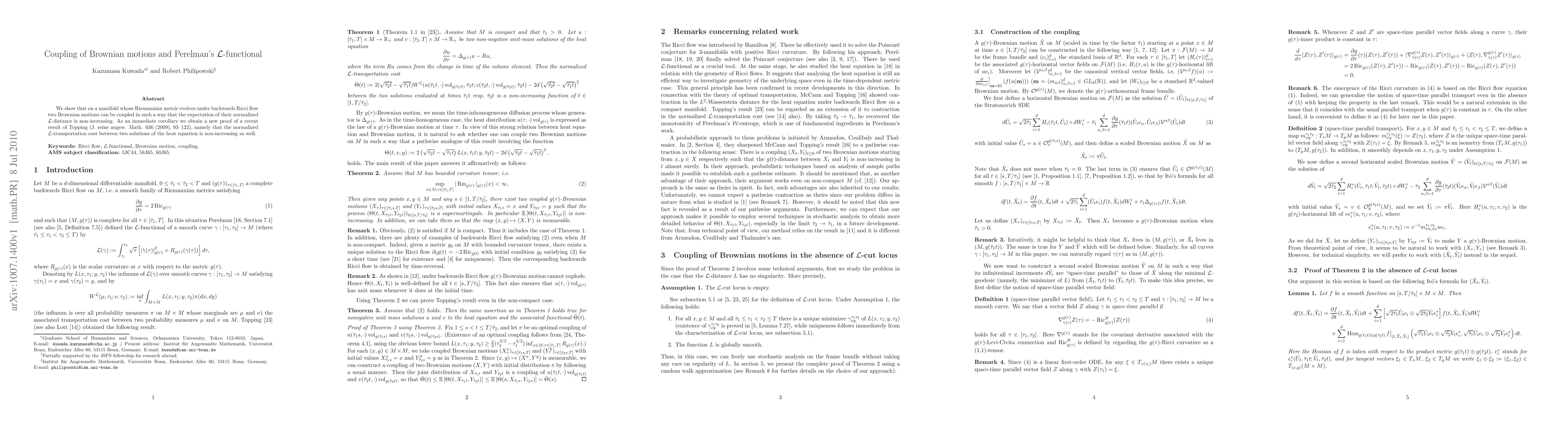 This paper demonstrates that on a manifold undergoing backwards Ricci flow, two Brownian motions can be coupled to ensure the expectation of their normalized L-distance decreases or remains constant. This result provides a new proof for Topping's theorem on the non-increasing nature of the normalized L-transportation cost between solutions of the heat equation.