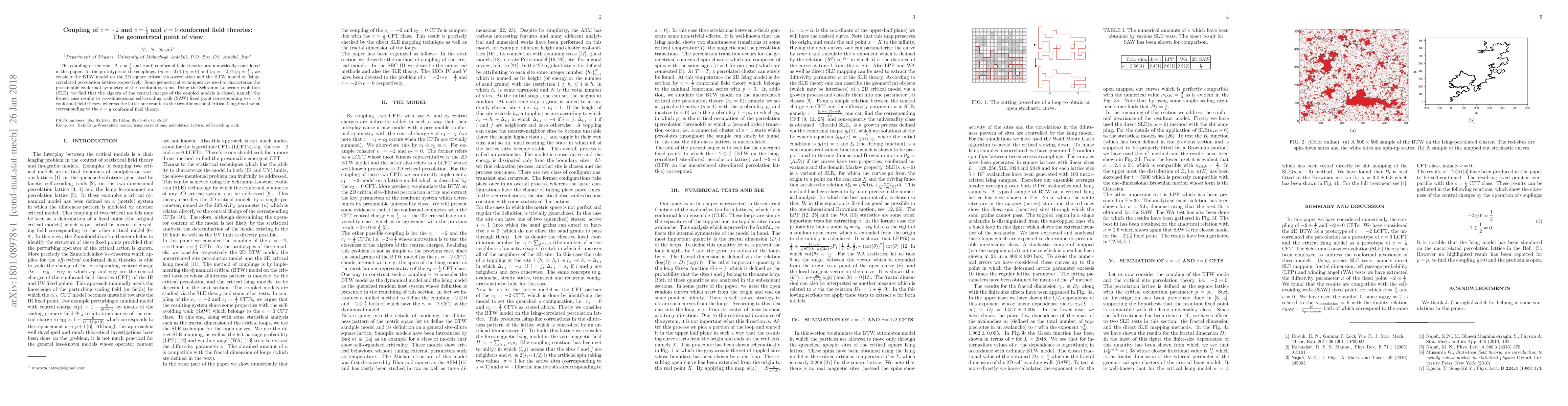 This paper numerically investigates the coupling of $c=-2$, $c=\frac{1}{2}$, and $c=0$ conformal field theories using geometrical techniques and SLE. It finds that coupling $c=-2$ with $c=0$ results in a $c=0$ SAW fixed point, while coupling $c=-2$ with $c=\frac{1}{2}$ leads to a $c=\frac{1}{2}$ Ising fixed point.
