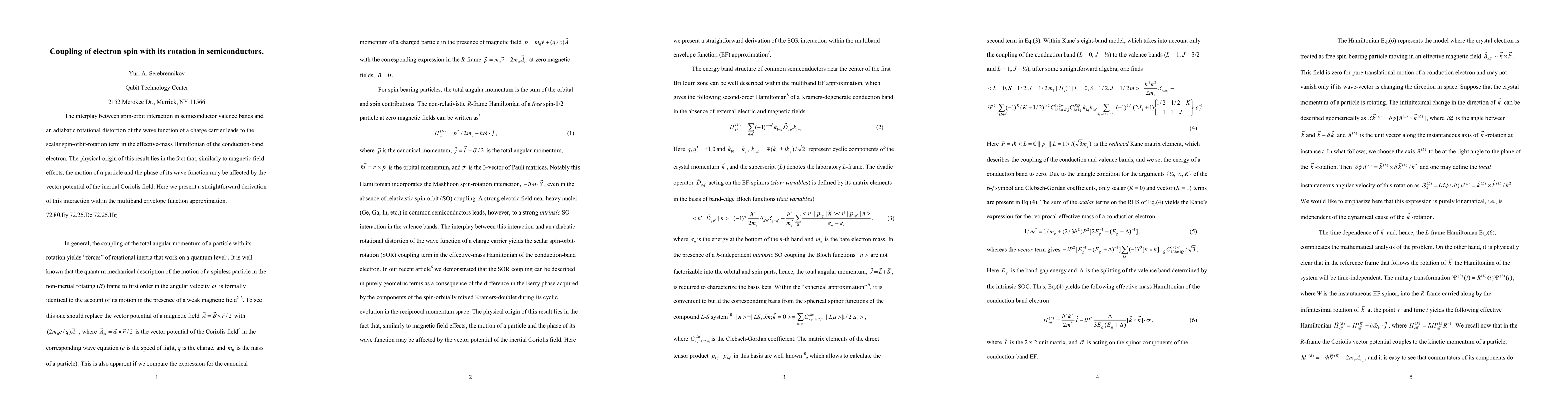 Account of an intrinsic spin-orbit coupling in the valence bands of common semiconductors yields the scalar spin-orbit-rotation term in the effective-mass Hamiltonian of the conduction-band electron. This result is obtained within the multiband envelope function approximation. Fundamentally, the spin-orbit-rotation coupling can be described in purely geometric terms as a consequence of the difference in the Berry phase acquired by the components of the spin-orbitally mixed Kramers-doublet during its cyclic evolution in the reciprocal momentum space.