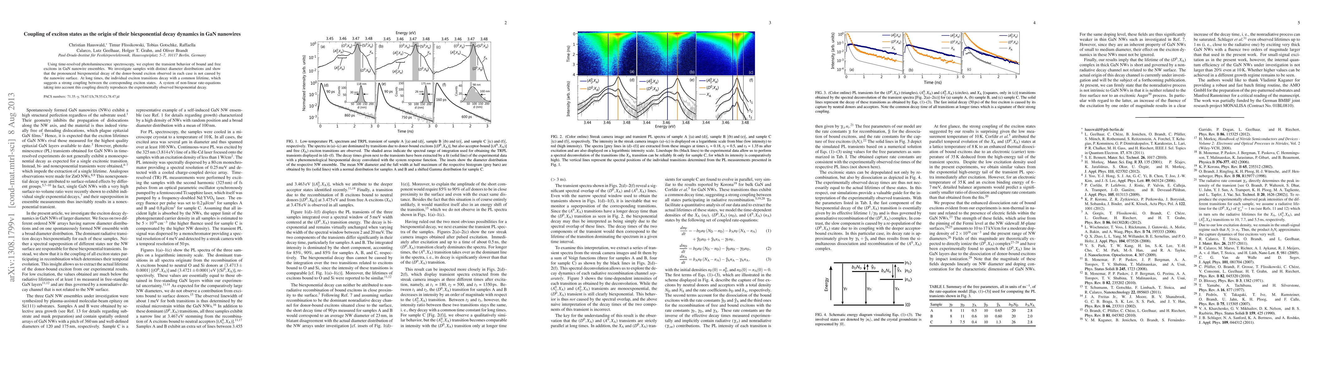 This study reveals that the biexponential decay of exciton states in GaN nanowires is due to strong coupling between exciton states rather than surface effects, as demonstrated by time-resolved spectroscopy. A model of non-linear rate-equations accurately reproduces the observed decay dynamics.