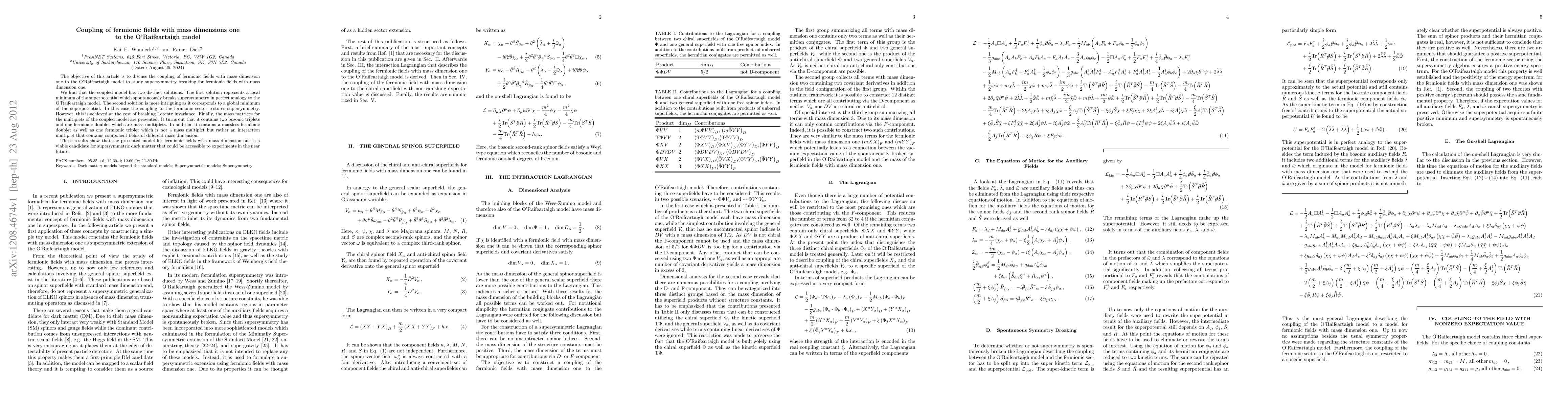 This paper explores the coupling of fermionic fields with mass dimension one to the O'Raifeartaigh model, revealing two solutions: one where supersymmetry is broken and the other where supersymmetry is restored at the cost of Lorentz invariance. The model presents viable candidates for supersymmetric dark matter.