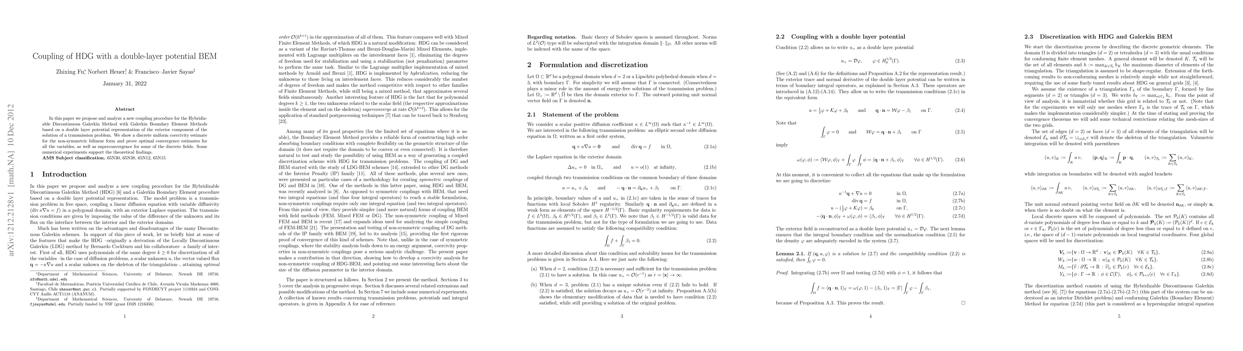 This paper proposes a new coupling method for combining Hybridizable Discontinuous Galerkin with Galerkin Boundary Element Methods using double layer potential representations, showing optimal convergence estimates and numerical experiment support.