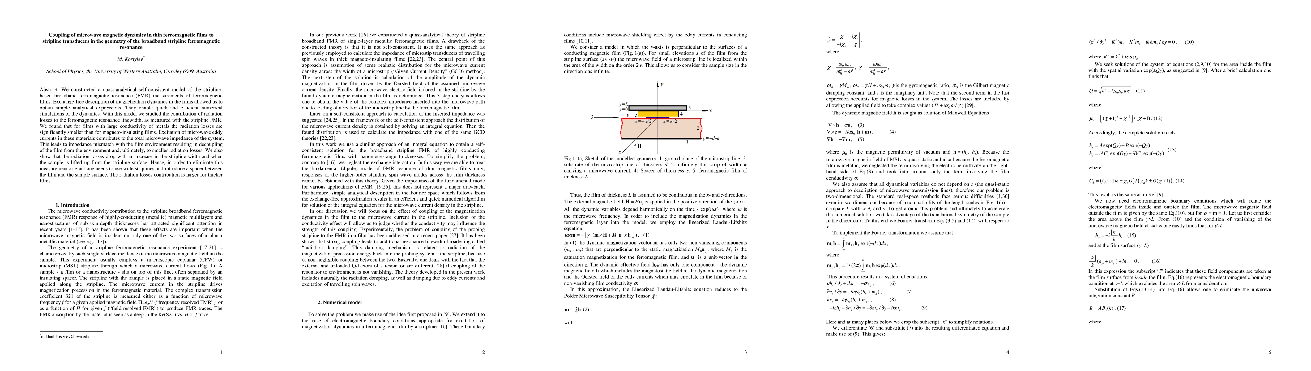 This paper presents a quasi-analytical model for stripline-based broadband ferromagnetic resonance measurements in thin ferromagnetic films, revealing that radiation losses are significantly lower for conductive films due to impedance mismatch. It suggests using wide striplines and spacers to minimize measurement artifacts.