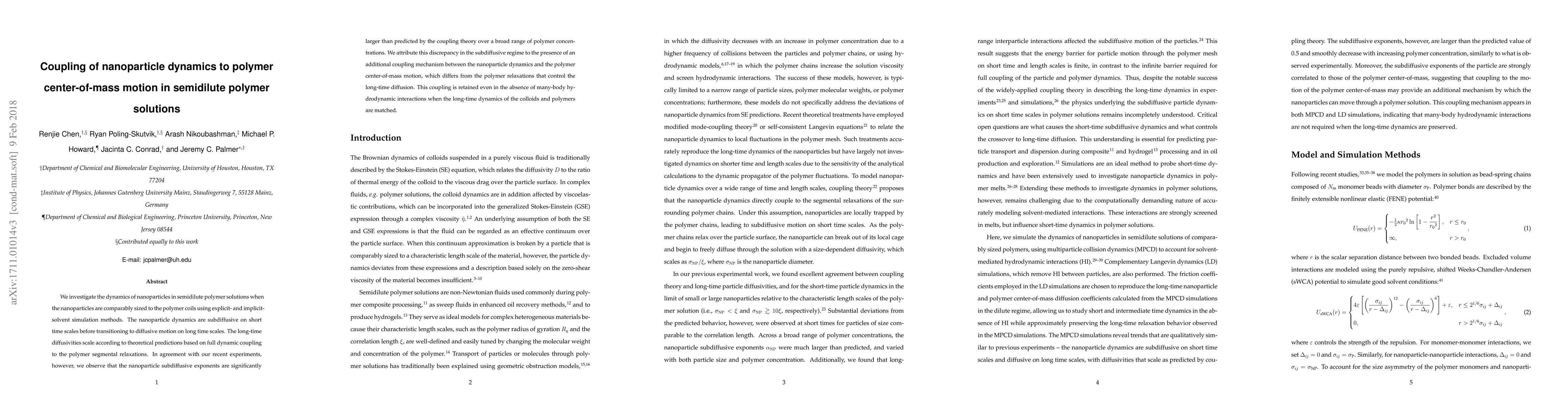 This study examines the dynamics of nanoparticles in semidilute polymer solutions, revealing subdiffusive nanoparticle motion that transitions to diffusive on long time scales, with an additional coupling mechanism between nanoparticle dynamics and polymer center-of-mass motion affecting the subdiffusive regime.