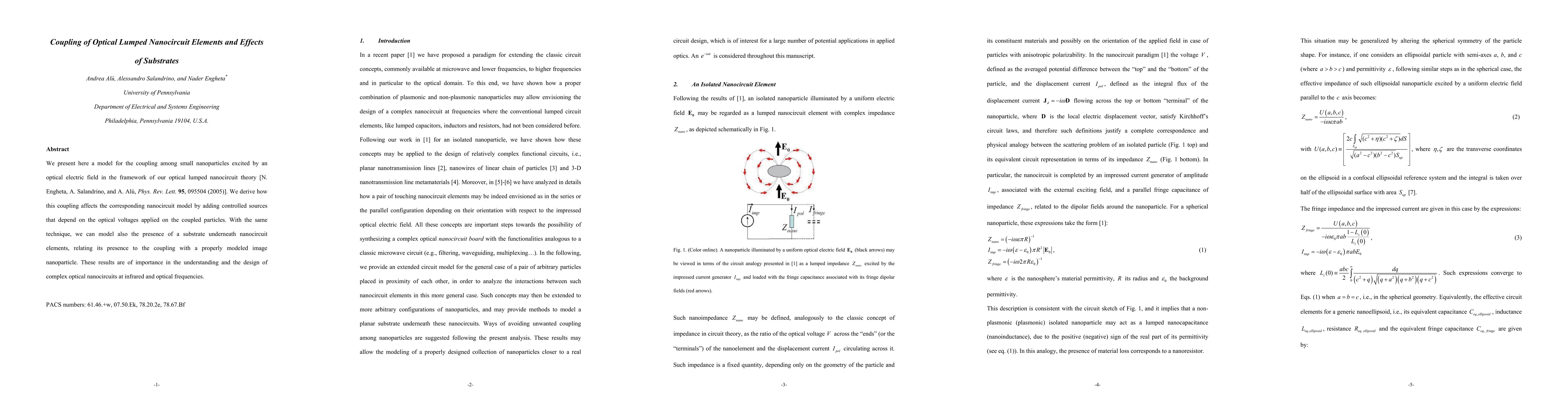 We present here a model for the coupling among small nanoparticles excited by an optical electric field in the framework of our optical lumped nanocircuit theory [N. Engheta, A. Salandrino, and A. Alu Phys. Rev. Lett. 95, 095504 (2005)]. We derive how this coupling affects the corresponding nanocircuit model by adding controlled sources that depend on the optical voltages applied on the coupled particles. With the same technique, we can model also the presence of a substrate underneath nanocircuit elements, relating its presence to the coupling with a properly modeled image nanoparticle. These results are of importance in the understanding and the design of complex optical nanocircuits at infrared and optical frequencies.