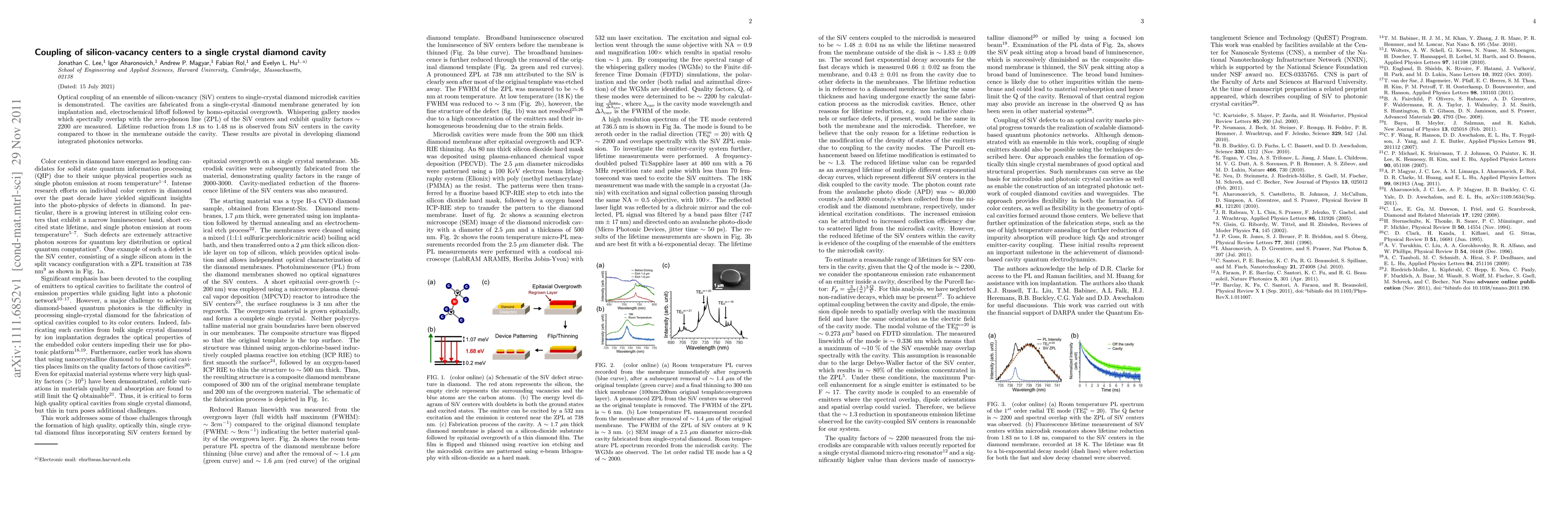 Researchers demonstrate optical coupling between silicon-vacancy centers in diamond and single-crystal diamond microdisk cavities, achieving whispering gallery modes with quality factors of ~2200. The study observes a reduction in SiV center lifetimes within the cavity, which is crucial for advancing diamond-based photonics.
