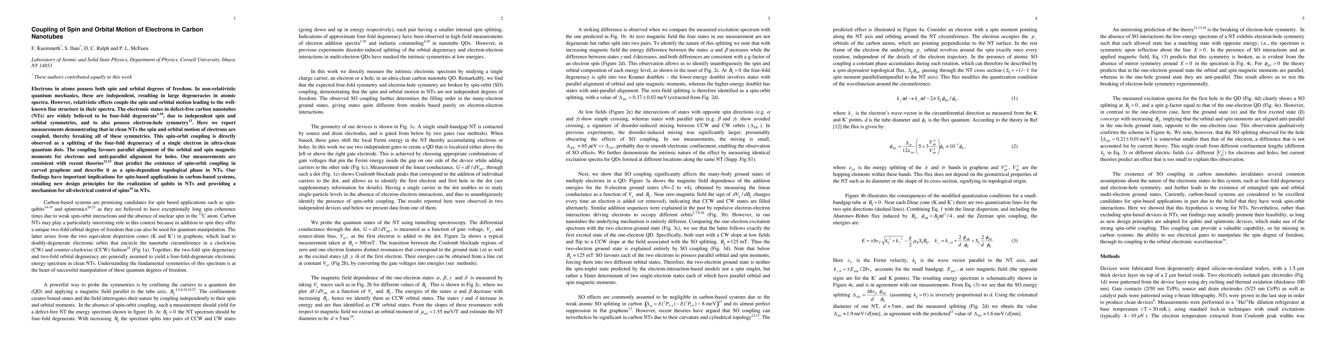 Researchers found that electrons in carbon nanotubes experience spin-orbit coupling, breaking their orbital and electron-hole symmetries, with implications for spin-based applications and qubit control.