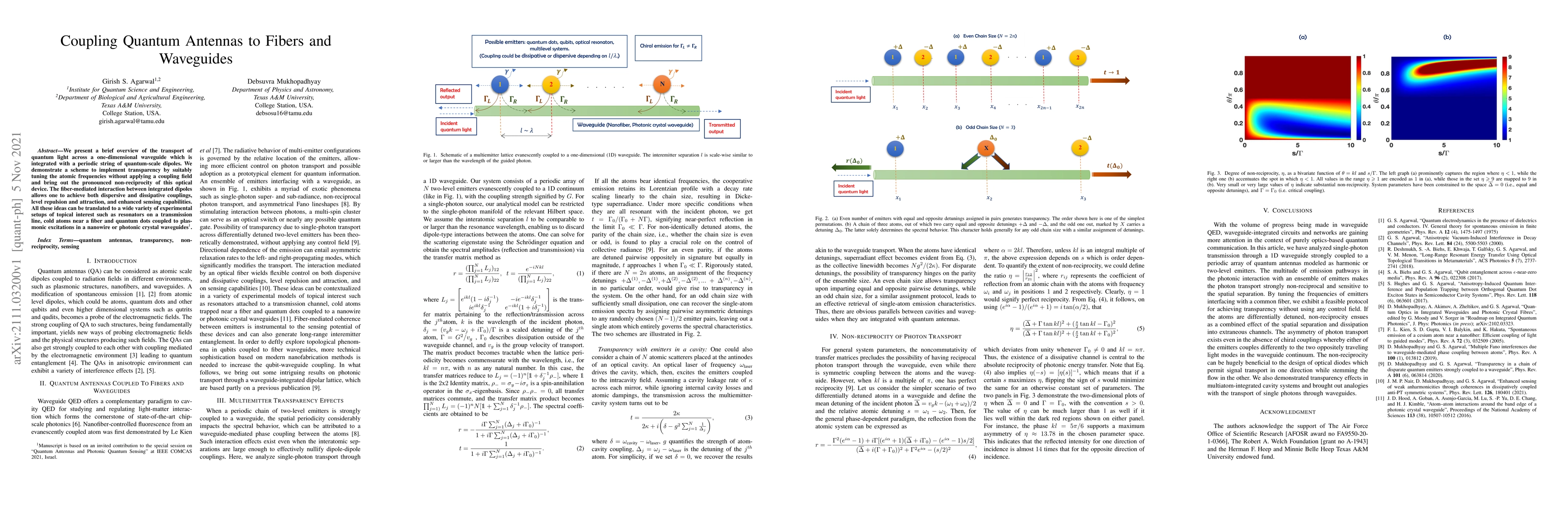 We present a brief overview of the transport of quantum light across a one-dimensional waveguide which is integrated with a periodic string of quantum-scale dipoles. We demonstrate a scheme to implement transparency by suitably tuning the atomic frequencies without applying a coupling field and bring out the pronounced non-reciprocity of this optical device. The fiber-mediated interaction between integrated dipoles allows one to achieve both dispersive and dissipative couplings, level repulsion and attraction, and enhanced sensing capabilities. All these ideas can be translated to a wide variety of experimental setups of topical interest such as resonators on a transmission line, cold atoms near a fiber and quantum dots coupled to plasmonic excitations in a nanowire or photonic crystal waveguides.