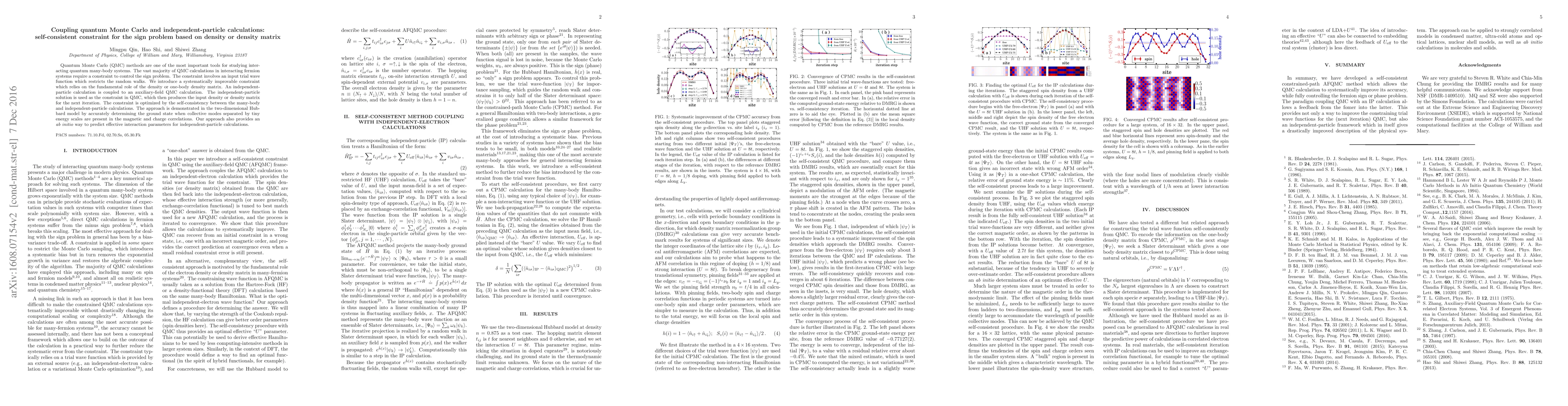 Quantum Monte Carlo (QMC) methods are one of the most important tools for studying interacting quantum many-body systems. The vast majority of QMC calculations in interacting fermion systems require a constraint to control the sign problem. The constraint involves an input trial wave function which restricts the random walks. We introduce a systematically improvable constraint which relies on the fundamental role of the density or one-body density matrix. An independent-particle calculation is coupled to an auxiliary-field QMC calculation. The independent-particle solution is used as the constraint in QMC, which then produces the input density or density matrix for the next iteration. The constraint is optimized by the self-consistency between the many-body and independent-particle calculations. The approach is demonstrated in the two-dimensional Hubbard model by accurately determining the ground state when collective modes separated by tiny energy scales are present in the magnetic and charge correlations. Our approach also provides an ab initio way to predict effective interaction parameters for independent-particle calculations.