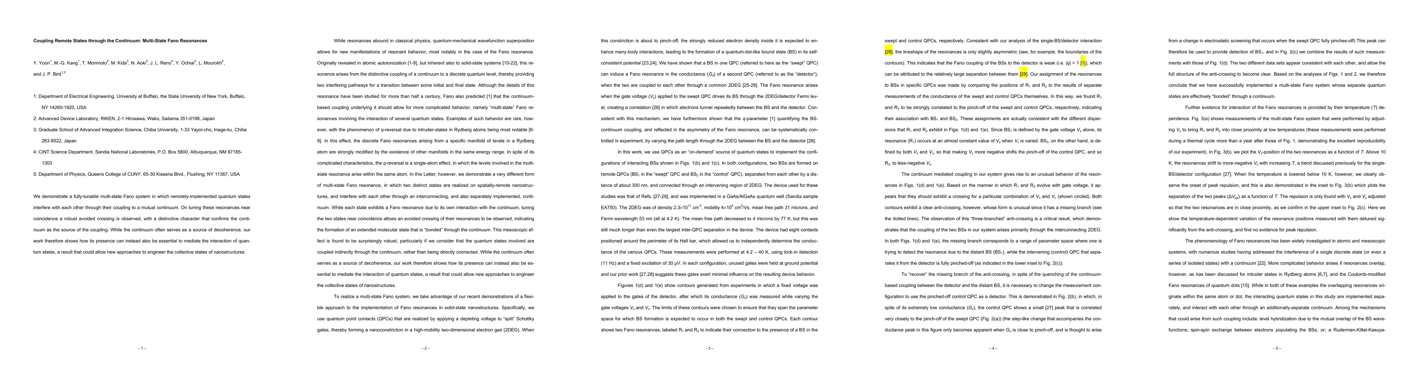 We demonstrate a fully-tunable multi-state Fano system in which remotely-implemented quantum states interfere with each other through their coupling to a mutual continuum. On tuning these resonances near coincidence a robust avoided crossing is observed, with a distinctive character that confirms the continuum as the source of the coupling. While the continuum often serves as a source of decoherence, our work therefore shows how its presence can instead also be essential to mediate the interaction of quantum states, a result that could allow new approaches to engineer the collective states of nanostructures.