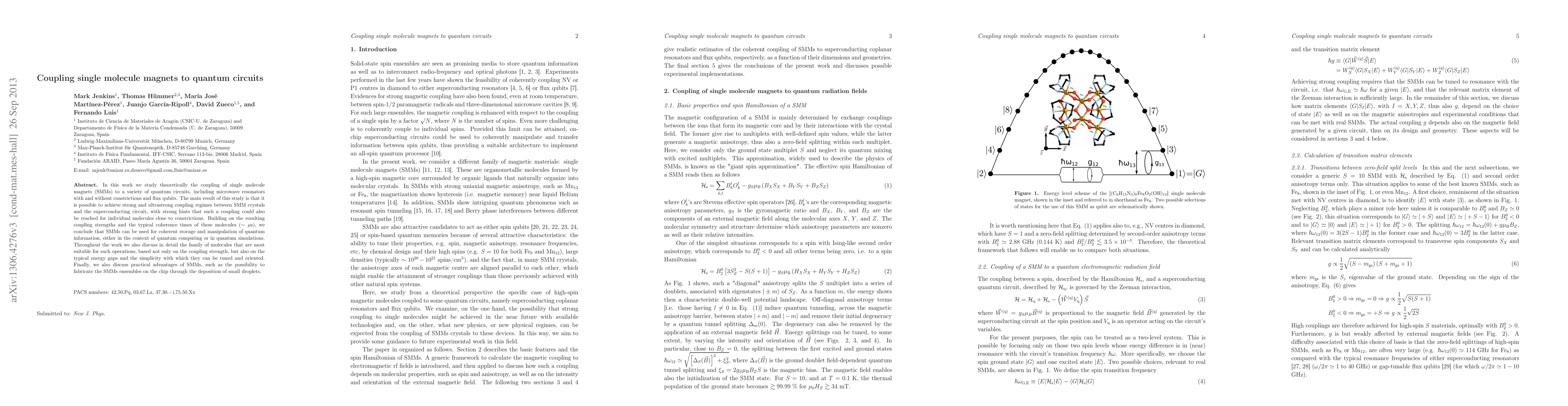 This paper theoretically explores the coupling of single molecule magnets (SMMs) to quantum circuits, demonstrating strong and ultrastrong coupling regimes that enable coherent quantum information storage and manipulation. It identifies suitable SMMs based on coupling strength, energy gaps, and tunability, highlighting practical advantages like chip fabrication via droplet deposition.