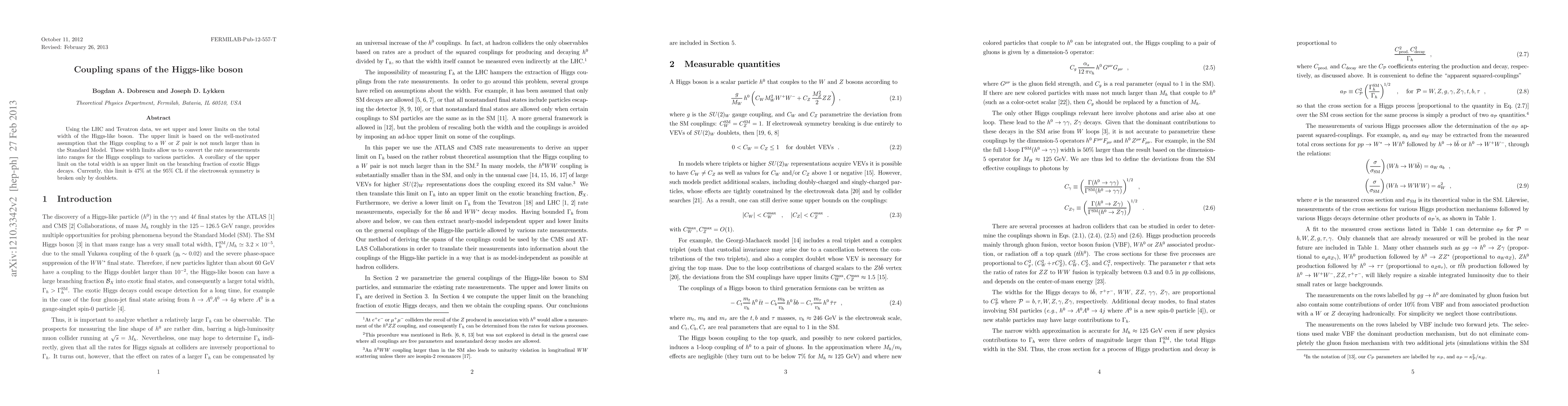 Using the LHC and Tevatron data, we set upper and lower limits on the total width of the Higgs-like boson. The upper limit is based on the well-motivated assumption that the Higgs coupling to a W or Z pair is not much larger than in the Standard Model. These width limits allow us to convert the rate measurements into ranges for the Higgs couplings to various particles. A corollary of the upper limit on the total width is an upper limit on the branching fraction of exotic Higgs decays. Currently, this limit is 47% at the 95% CL if the electroweak symmetry is broken only by doublets.