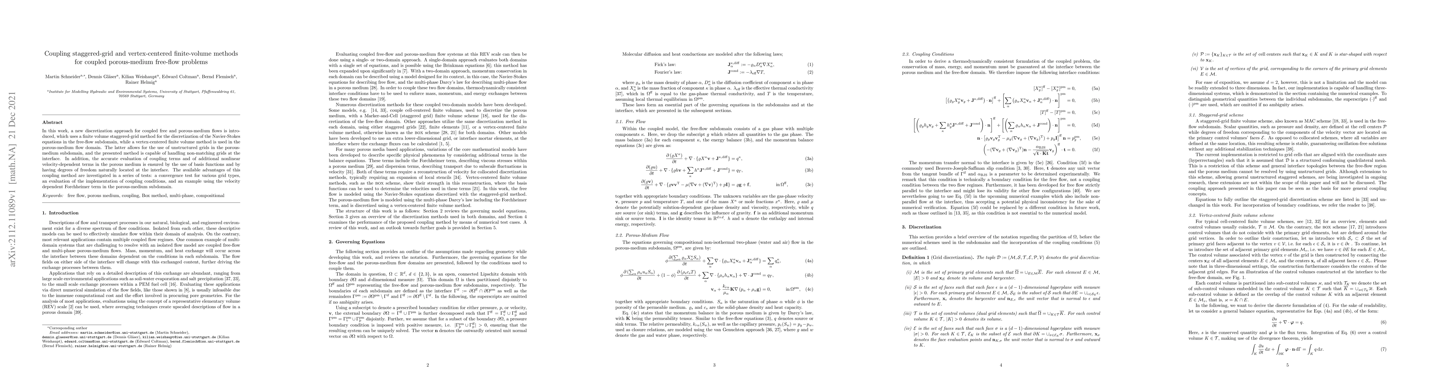 This paper introduces a novel discretization method combining staggered-grid and vertex-centered finite volume methods for coupled free and porous-medium flow problems, allowing for non-matching grids and accurate evaluation of coupling terms. The method is tested for convergence and implementation efficiency.