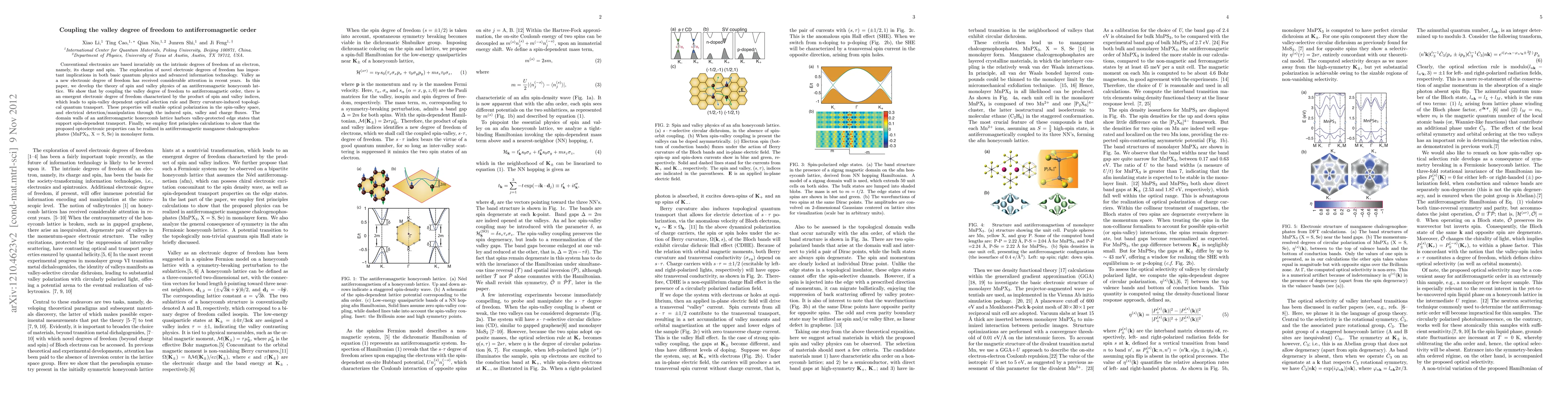 Researchers discovered a new electronic degree of freedom called valley in antiferromagnetic honeycomb lattices, enabling spin-valley dependent optical properties and topological quantum transport. This discovery could lead to optoelectronic devices with electrical detection/manipulation through induced spin, valley, and charge fluxes.