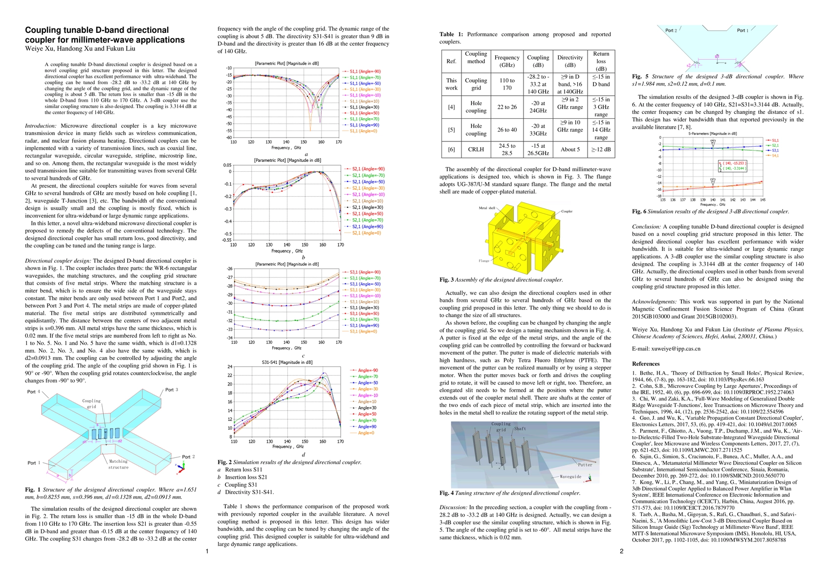 A novel coupling grid structure is proposed for a D-band directional coupler, utilizing a tunable design with angle adjustment for coupling control.
