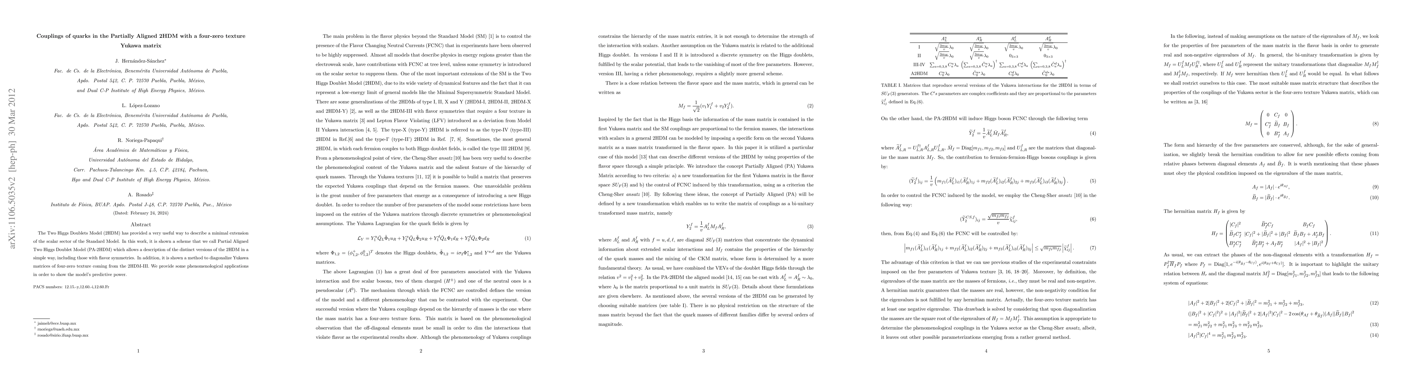 This paper introduces the Partial Aligned Two Higgs Doublet Model (PA-2HDM) to simplify the description of various 2HDM versions, including those with flavor symmetries. It also presents a method to diagonalize Yukawa matrices with a four-zero texture, demonstrating the model's predictive power through phenomenological applications.