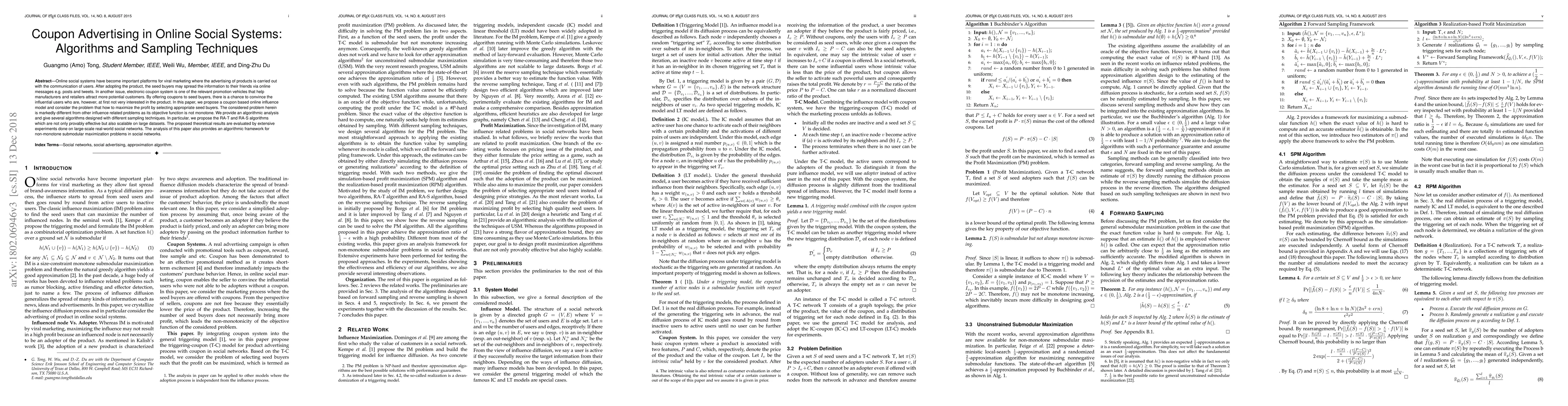 This paper proposes a coupon-based online influence model to maximize profit through selecting optimal seed buyers in social networks. It introduces RA-T and RA-S algorithms with sampling techniques, demonstrating their effectiveness and scalability on large datasets, and provides a framework for non-monotone submodular maximization problems.