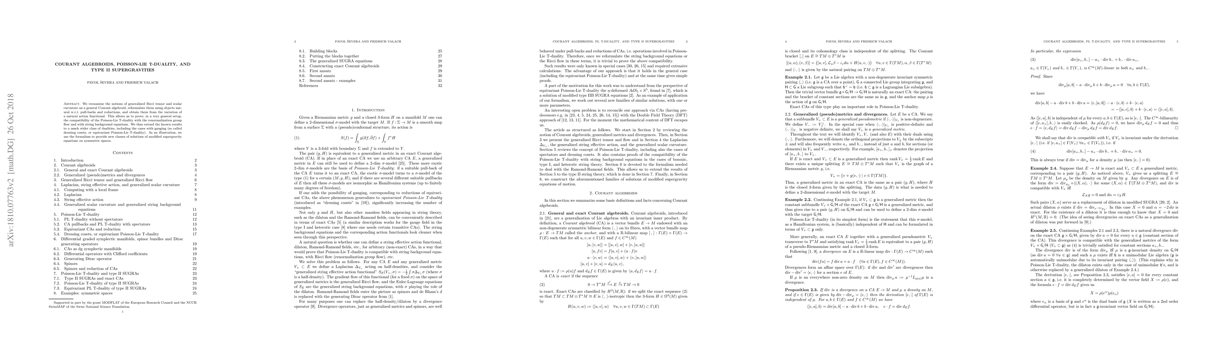 This paper reformulates generalized Ricci tensor and scalar curvature on Courant algebroids, linking them to Poisson-Lie T-duality and renormalizable group flows. It extends compatibility results to a broader range of dualities, including gauging, and applies the formalism to find new solutions of modified supergravity equations on symmetric spaces.