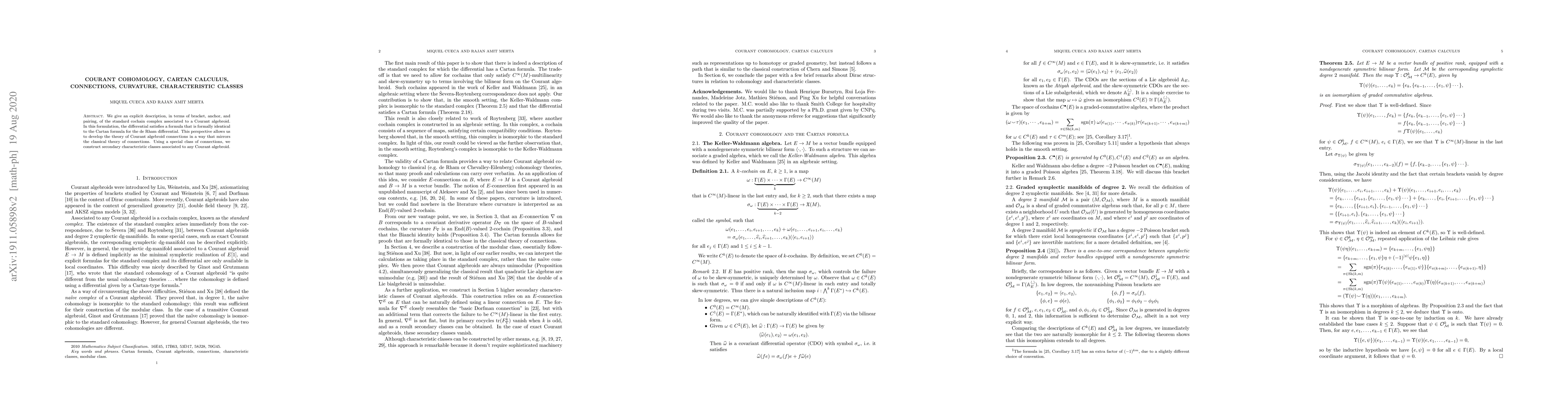 This paper explicitly describes the cochain complex of a Courant algebroid using bracket, anchor, and pairing, mirroring the Cartan calculus for de Rham differential. It constructs secondary characteristic classes via special connections, extending the classical theory of connections.