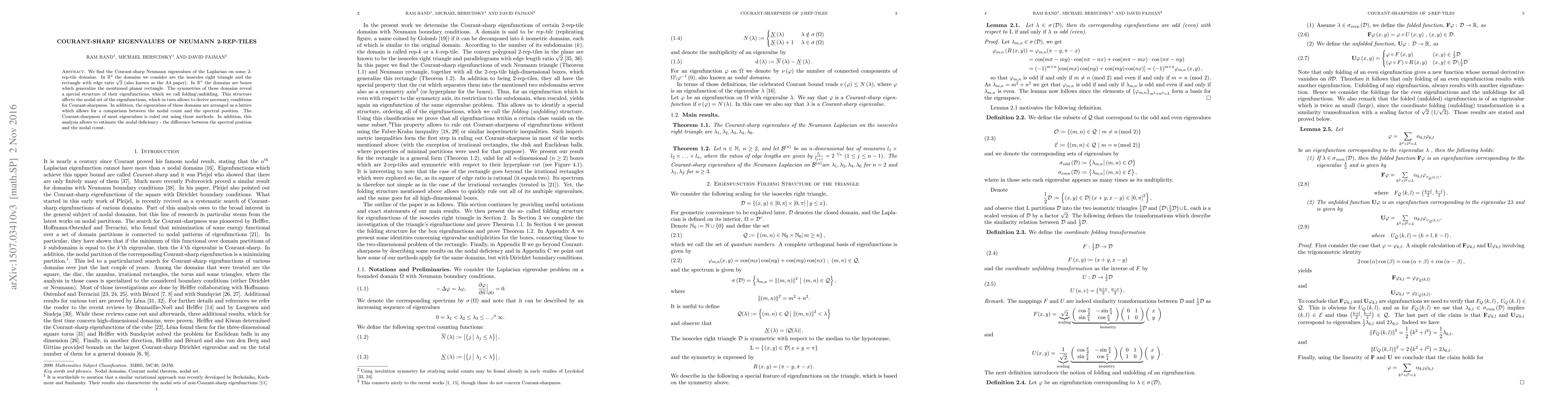 We find the Courant-sharp Neumann eigenvalues of the Laplacian on some 2-rep-tile domains. In $\R^{2}$ the domains we consider are the isosceles right triangle and the rectangle with edge ratio $\sqrt{2}$ (also known as the A4 paper). In $\R^{n}$ the domains are boxes which generalize the mentioned planar rectangle. The symmetries of those domains reveal a special structure of their eigenfunctions, which we call folding\textbackslash{}unfolding. This structure affects the nodal set of the eigenfunctions, which in turn allows to derive necessary conditions for Courant-sharpness. In addition, the eigenvalues of these domains are arranged as a lattice which allows for a comparison between the nodal count and the spectral position. The Courant-sharpness of most eigenvalues is ruled out using those methods. In addition, this analysis allows to estimate the nodal deficiency - the difference between the spectral position and the nodal count.