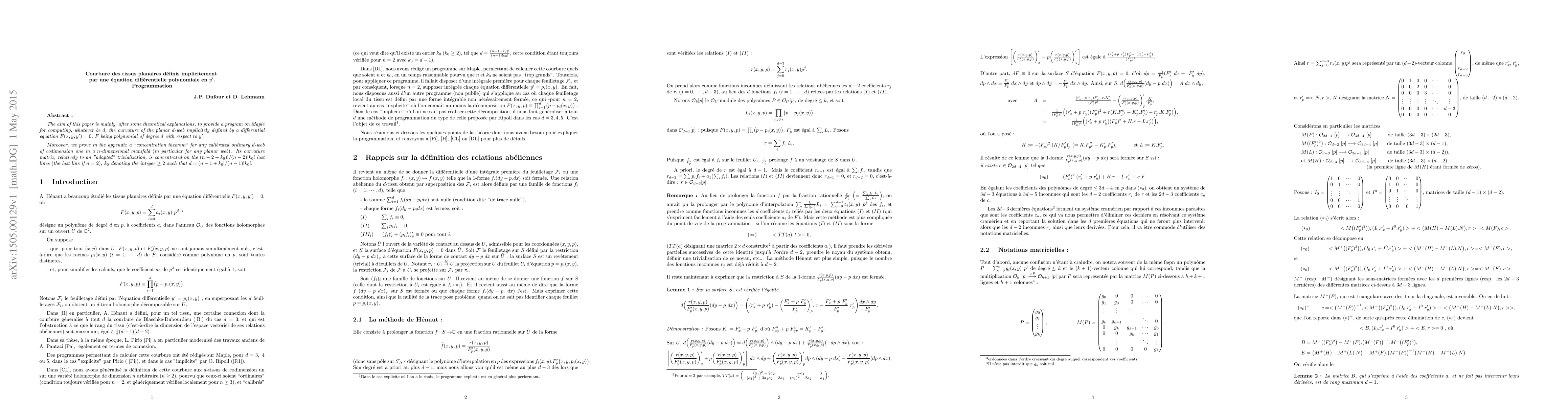 The aim of this paper is mainly, after some theoretical explanations, to provide a program on Maple for computing, whatever be d, the curvature of the planar d-web implicitely defined by a differential equation F(x,y,y')=0, F being polynomial of degree d with respect to y'. Moreover, we prove in the appendix a "concentration theorem" for any calibrated ordinary $d$-web of codimension one in n-dimensional manifold (in particular for any planar web). Its curvature matrix, relatively to an "adapted" trivialization, is concentrated on the (n-2+k0)!/(n-2)!k0! last lines (the last line if n=2), k0 denoting the integer such that d=(n-1+k0)!/(n-1)!(k0)!$.