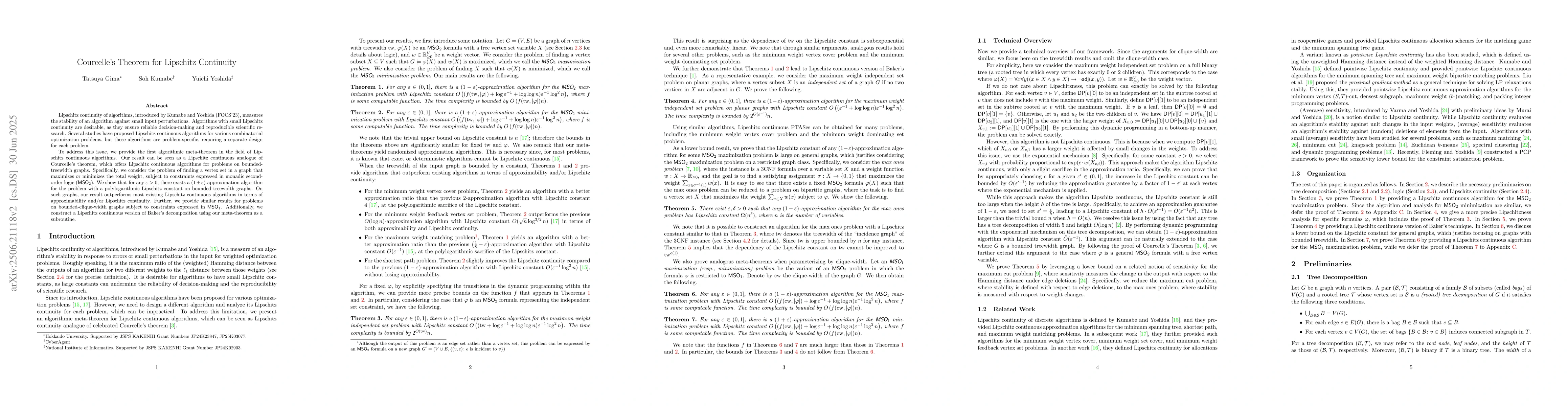 The paper develops a meta-theorem for Lipschitz continuous algorithms on graphs with bounded treewidth and clique-width, utilizing monadic second-order logic and dynamic programming over parse trees.