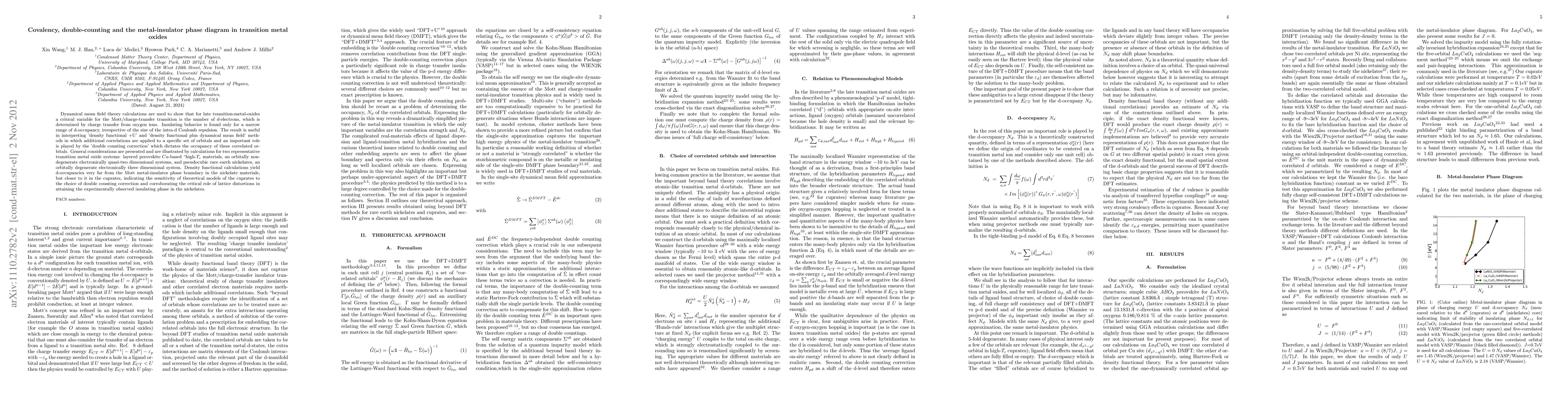 Dynamical mean field theory calculations are used to show that for late transition-metal-oxides a critical variable for the Mott/charge-transfer transition is the number of d-electrons, which is determined by charge transfer from oxygen ions. Insulating behavior is found only for a narrow range of d-occupancy, irrespective of the size of the intra-d Coulomb repulsion. The result is useful in interpreting 'density functional +U' and 'density functional plus dynamical mean field' methods in which additional correlations are applied to a specific set of orbitals and an important role is played by the 'double counting correction' which dictates the occupancy of these correlated orbitals. General considerations are presented and are illustrated by calculations for two representative transition metal oxide systems: layered perovskite Cu-based "high-Tc" materials, an orbitally non-degenerate electronically quasi-two dimensional systems, and pseudocubic rare earch nickelates, an orbitally degenerate electronically three dimensional system. Density functional calculations yield d-occupancies very far from the Mott metal-insulator phase boundary in the nickelate materials, but closer to it in the cuprates, indicating the sensitivity of theoretical models of the cuprates to the choice of double counting correction and corroborating the critical role of lattice distortions in attaining the experimentally observed insulating phase in the nickelates.
