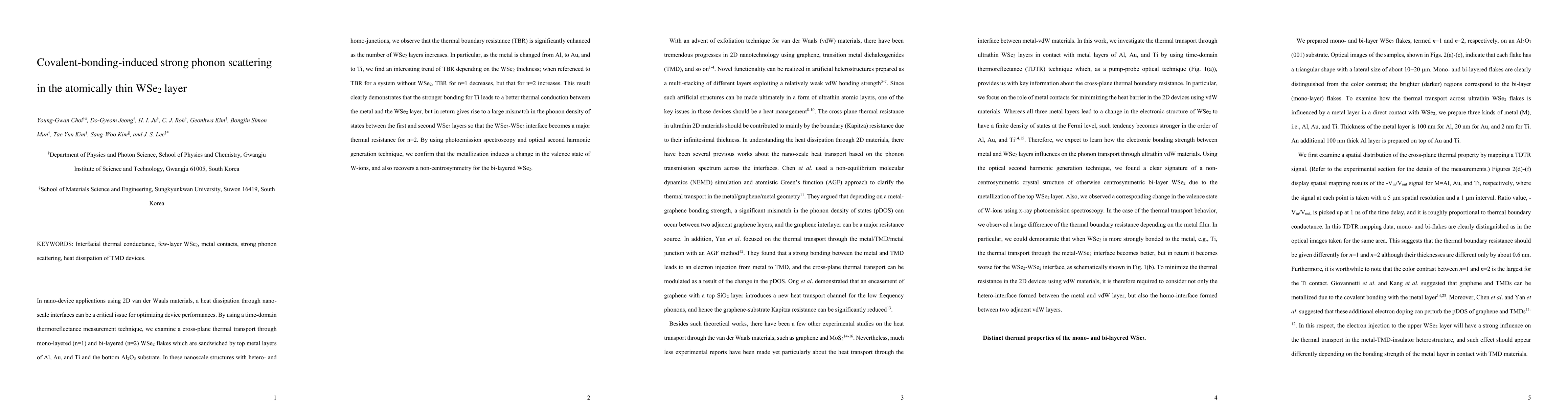 In nano-device applications using 2D van der Waals materials, a heat dissipation through nano-scale interfaces can be a critical issue for optimizing device performances. By using a time-domain thermoreflectance measurement technique, we examine a cross-plane thermal transport through mono-layered (n=1) and bi-layered (n=2) WSe2 flakes which are sandwiched by top metal layers of Al, Au, and Ti and the bottom Al2O3 substrate. In these nanoscale structures with hetero- and homo-junctions, we observe that the thermal boundary resistance (TBR) is significantly enhanced as the number of WSe2 layers increases. In particular, as the metal is changed from Al, to Au, and to Ti, we find an interesting trend of TBR depending on the WSe2 thickness; when referenced to TBR for a system without WSe2, TBR for n=1 decreases, but that for n=2 increases. This result clearly demonstrates that the stronger bonding for Ti leads to a better thermal conduction between the metal and the WSe2 layer, but in return gives rise to a large mismatch in the phonon density of states between the first and second WSe2 layers so that the WSe2-WSe2 interface becomes a major thermal resistance for n=2. By using photoemission spectroscopy and optical second harmonic generation technique, we confirm that the metallization induces a change in the valence state of W-ions, and also recovers a non-centrosymmetry for the bi-layered WSe2.