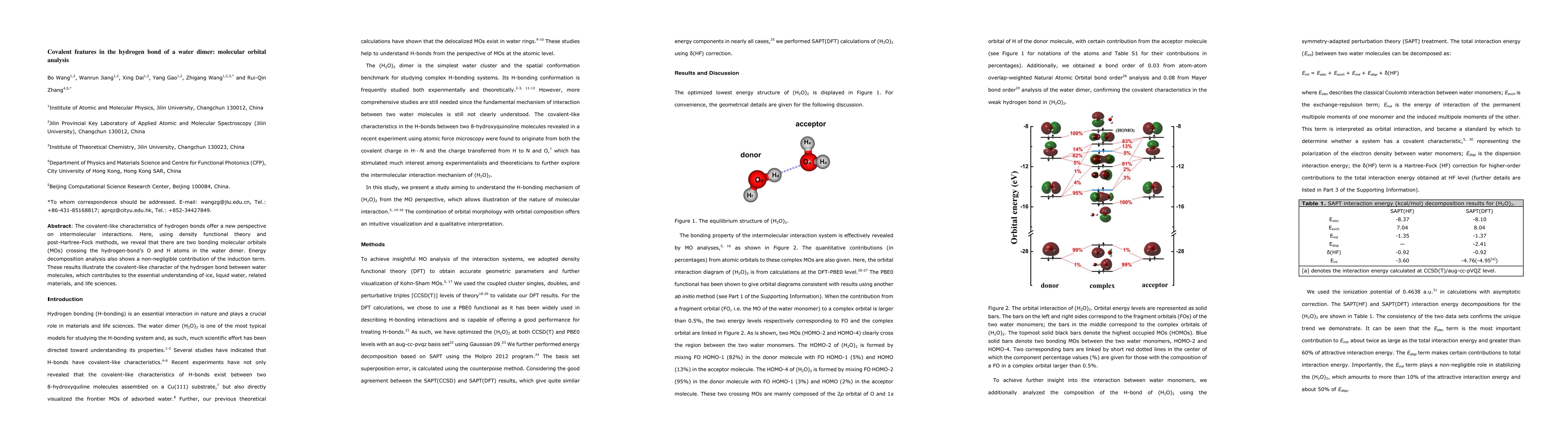 This paper uses advanced quantum chemistry methods to demonstrate that hydrogen bonds in water dimers exhibit covalent-like characteristics, with two bonding molecular orbitals crossing the O and H atoms, and a significant induction term contribution, enhancing our understanding of water's behavior in various states.