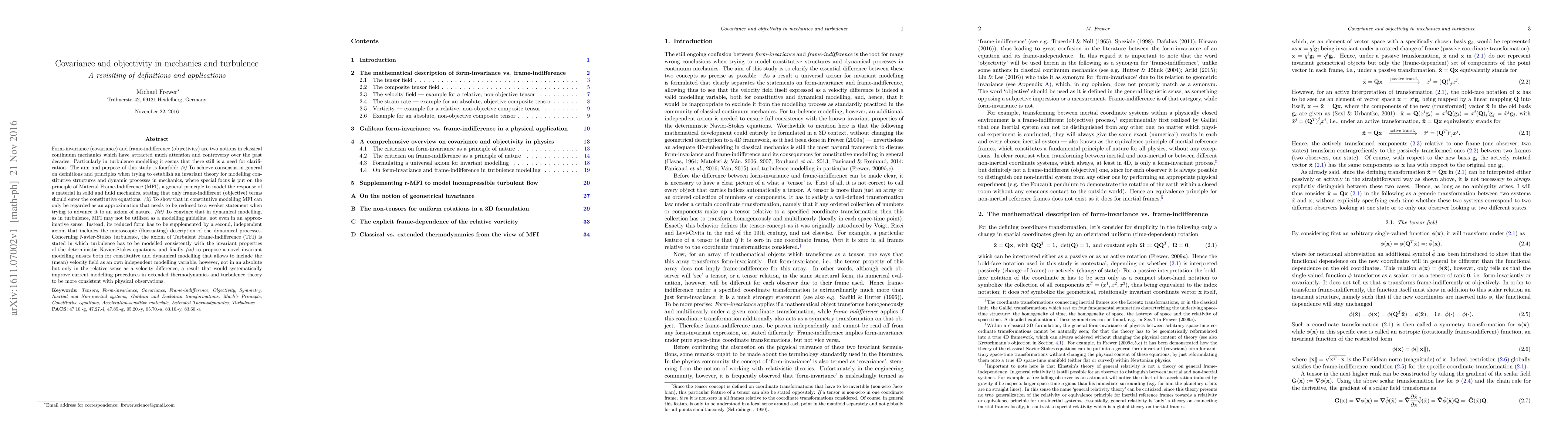 This study clarifies the concepts of form-invariance (covariance) and objectivity in mechanics and turbulence, proposing a novel invariant modelling ansatz that improves consistency with physical observations.
