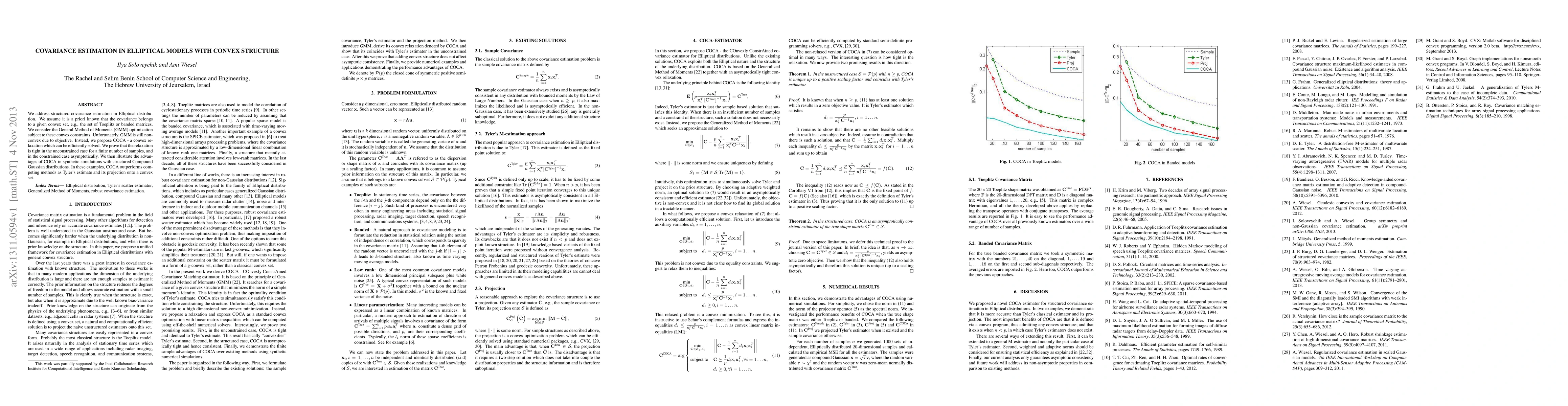 This paper proposes COCA, a convex relaxation method for structured covariance estimation in elliptical models, which is efficiently solvable and outperforms traditional methods like Tyler's estimate, especially when the covariance matrix belongs to a convex set like Toeplitz or banded matrices. The method is shown to be tight in both unconstrained and constrained scenarios.