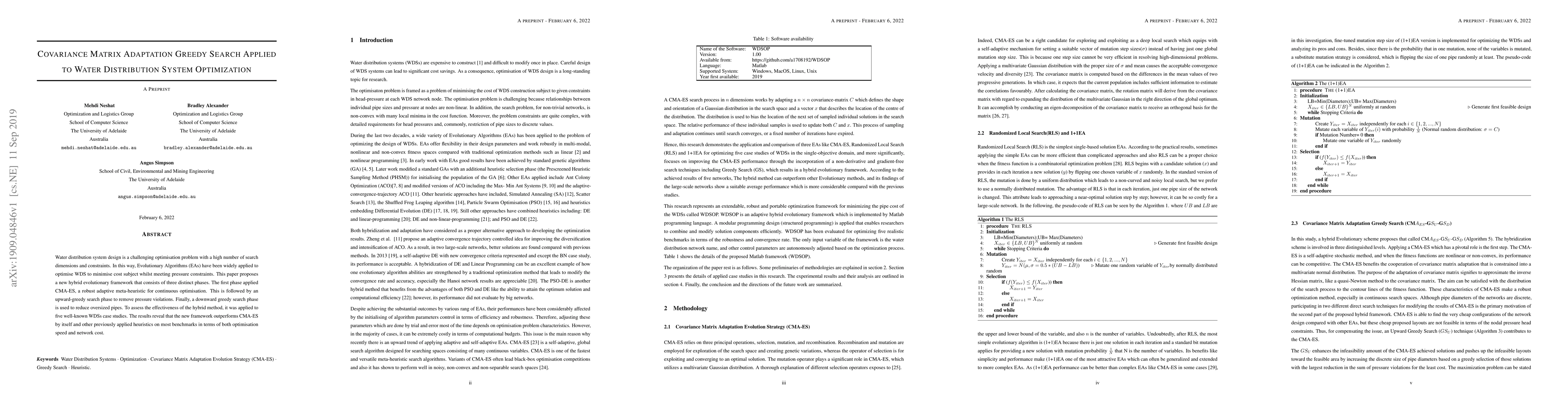 Water distribution system design is a challenging optimisation problem with a high number of search dimensions and constraints. In this way, Evolutionary Algorithms (EAs) have been widely applied to optimise WDS to minimise cost subject whilst meeting pressure constraints. This paper proposes a new hybrid evolutionary framework that consists of three distinct phases. The first phase applied CMA-ES, a robust adaptive meta-heuristic for continuous optimisation. This is followed by an upward-greedy search phase to remove pressure violations. Finally, a downward greedy search phase is used to reduce oversized pipes. To assess the effectiveness of the hybrid method, it was applied to five well-known WDSs case studies. The results reveal that the new framework outperforms CMA-ES by itself and other previously applied heuristics on most benchmarks in terms of both optimisation speed and network cost.