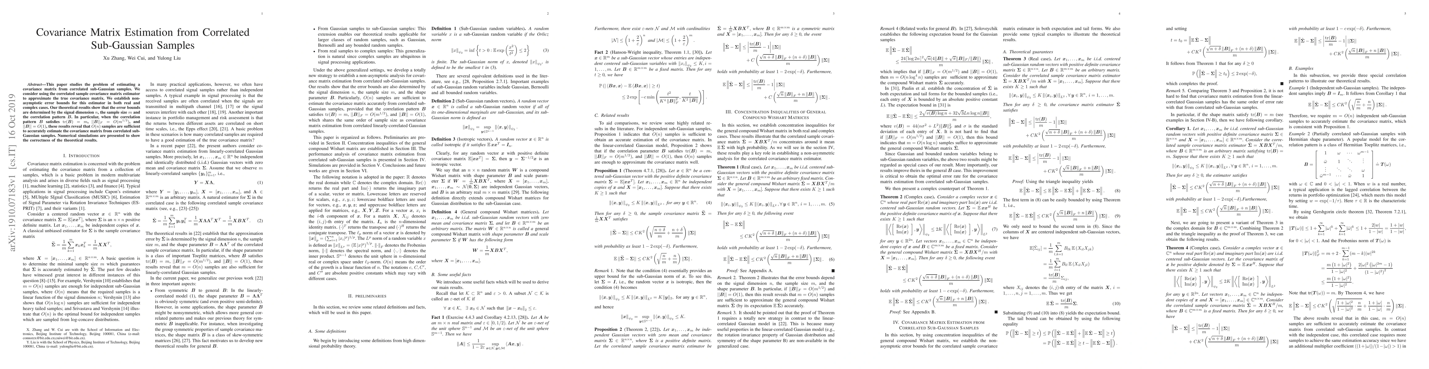 This paper investigates the estimation of a covariance matrix from correlated sub-Gaussian samples, establishing non-asymptotic error bounds for the correlated sample covariance matrix estimator. The theoretical results demonstrate that $O(n)$ samples are sufficient for accurate estimation when the correlation pattern satisfies specific conditions.