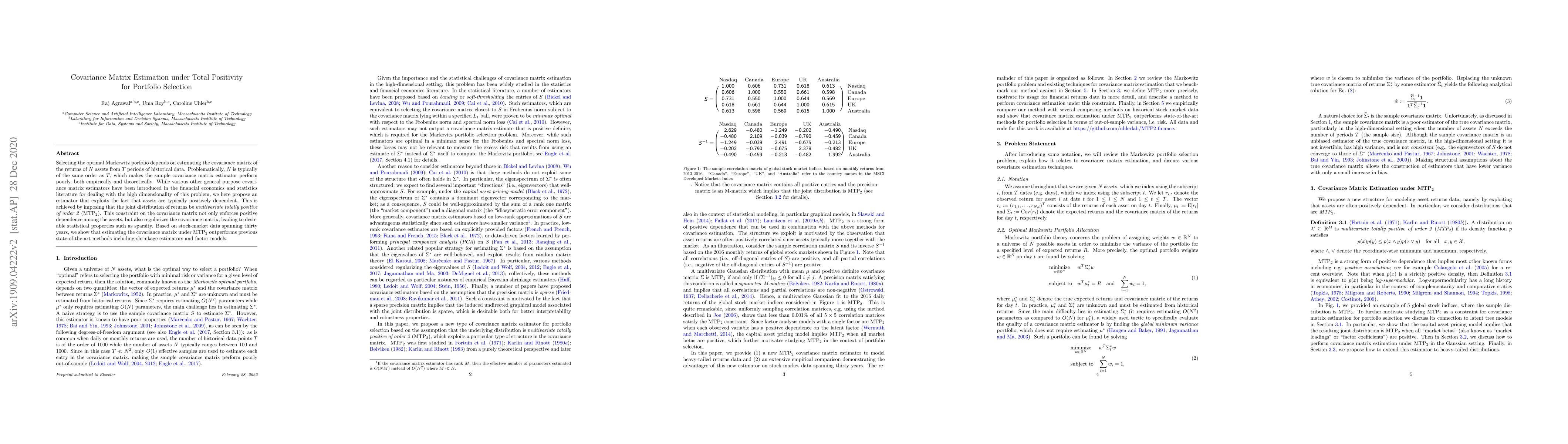 Selecting the optimal Markowitz porfolio depends on estimating the covariance matrix of the returns of $N$ assets from $T$ periods of historical data. Problematically, $N$ is typically of the same order as $T$, which makes the sample covariance matrix estimator perform poorly, both empirically and theoretically. While various other general purpose covariance matrix estimators have been introduced in the financial economics and statistics literature for dealing with the high dimensionality of this problem, we here propose an estimator that exploits the fact that assets are typically positively dependent. This is achieved by imposing that the joint distribution of returns be multivariate totally positive of order 2 ($\text{MTP}_2$). This constraint on the covariance matrix not only enforces positive dependence among the assets, but also regularizes the covariance matrix, leading to desirable statistical properties such as sparsity. Based on stock-market data spanning over thirty years, we show that estimating the covariance matrix under $\text{MTP}_2$ outperforms previous state-of-the-art methods including shrinkage estimators and factor models.