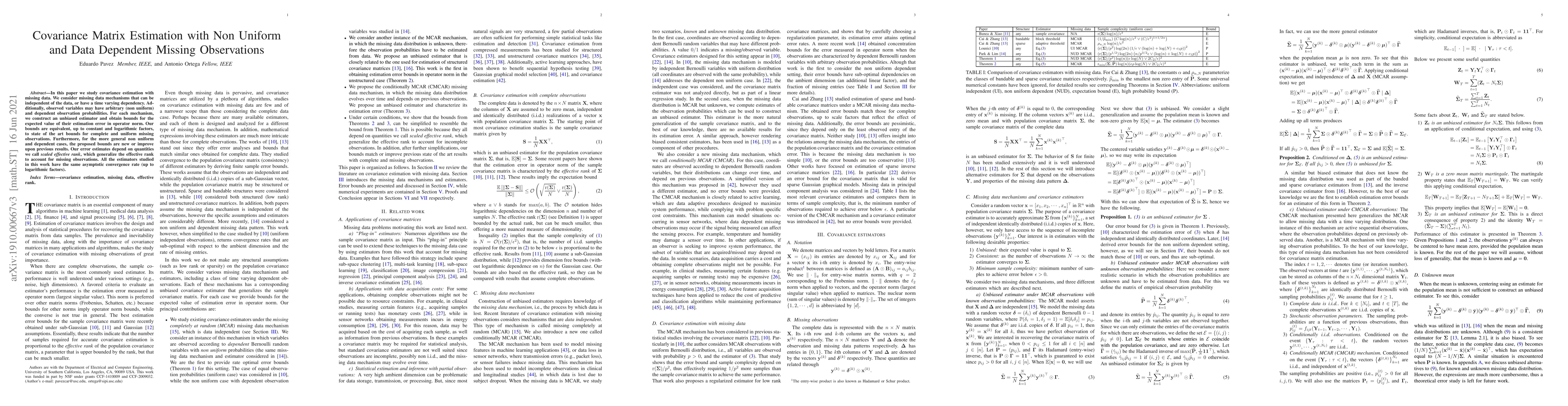 This paper develops unbiased estimators for covariance matrix estimation in scenarios with non-uniform and data-dependent missing observations. It provides new or improved bounds on estimation error, introducing a scaled effective rank to generalize effective rank for missing data, achieving the same asymptotic convergence rate as existing methods.