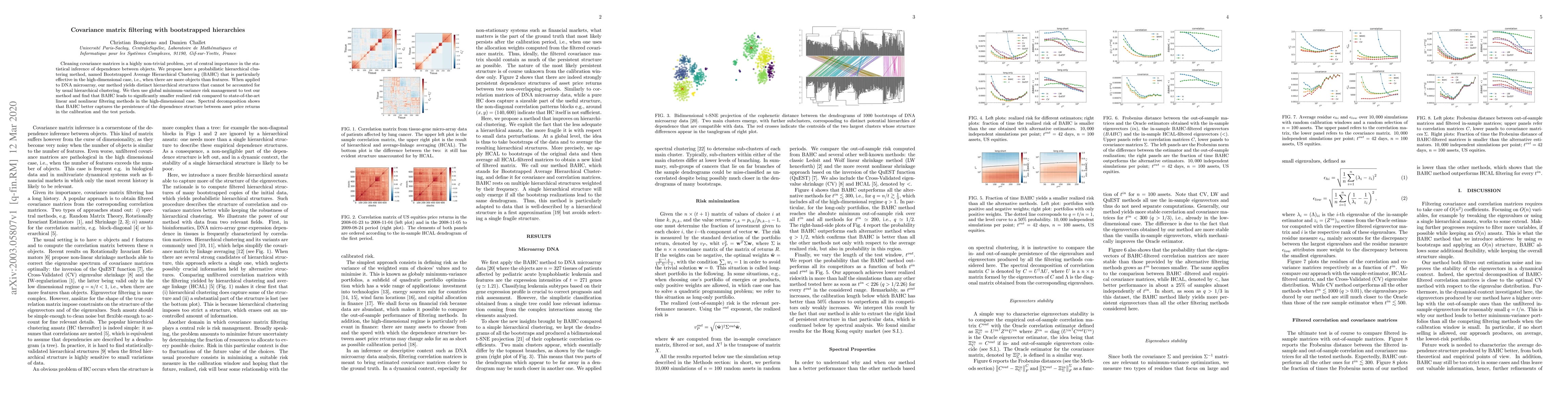 Statistical inference of the dependence between objects often relies on covariance matrices. Unless the number of features (e.g. data points) is much larger than the number of objects, covariance matrix cleaning is necessary to reduce estimation noise. We propose a method that is robust yet flexible enough to account for fine details of the structure covariance matrix. Robustness comes from using a hierarchical ansatz and dependence averaging between clusters; flexibility comes from a bootstrap procedure. This method finds several possible hierarchical structures in DNA microarray gene expression data, and leads to lower realized risk in global minimum variance portfolios than current filtering methods when the number of data points is relatively small.