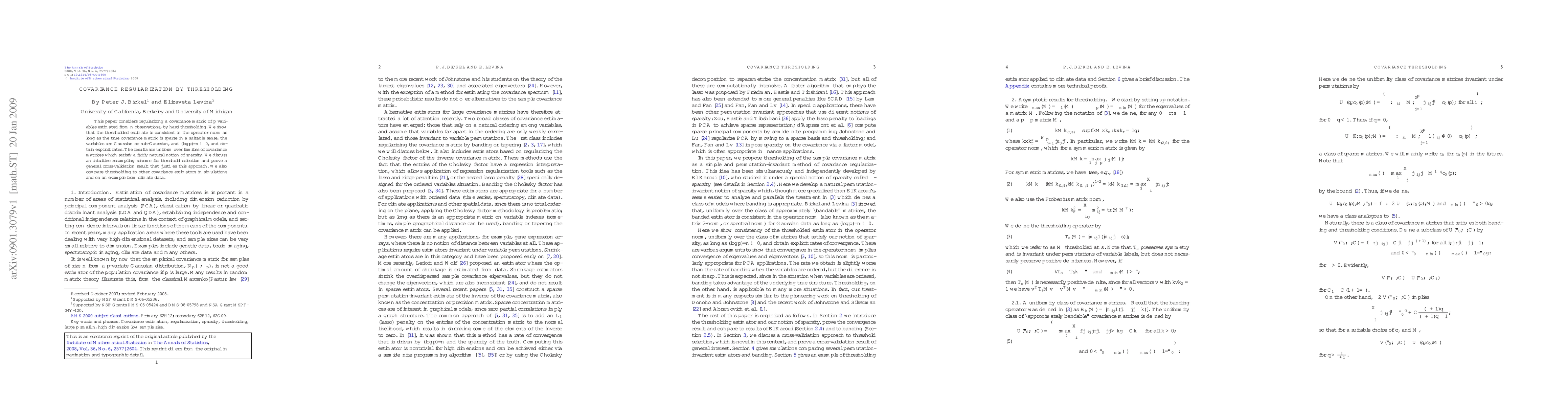 The paper proposes a covariance regularization method by thresholding, which is simple and computationally efficient. It shows consistency in the operator norm for sparse covariance matrices under certain conditions.