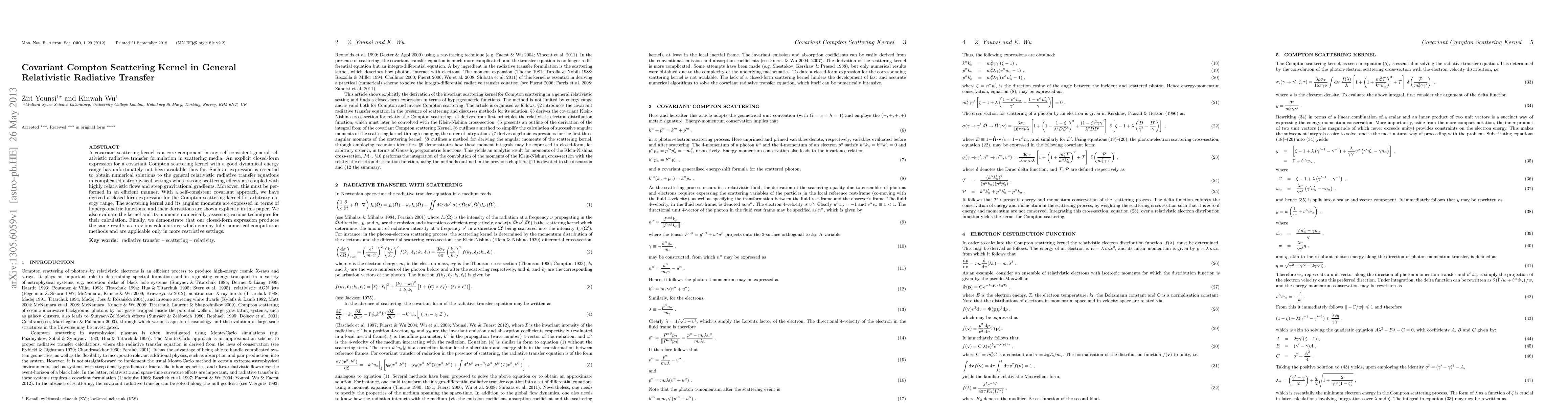 This paper derives a closed-form expression for a covariant Compton scattering kernel, essential for solving general relativistic radiative transfer equations in complex astrophysical environments. The kernel is expressed in terms of hypergeometric functions, validated through numerical evaluation and comparison with previous methods.