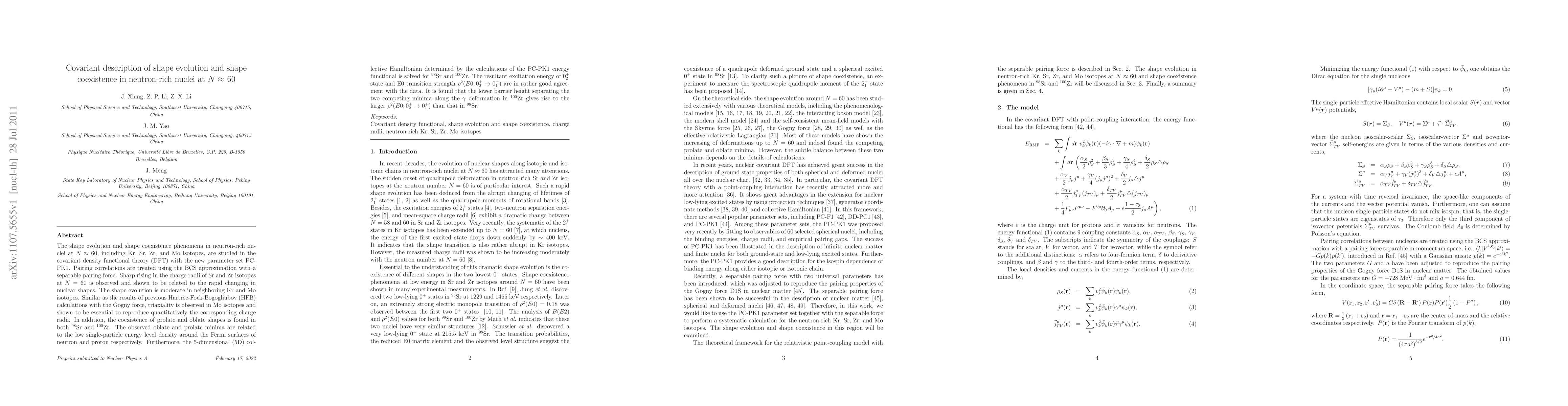 The paper presents a detailed analysis of nuclear shape evolution and coexistence using a novel covariant DFT approach with PC-PK1 parameter set, providing a comprehensive 5D collective Hamiltonian analysis.