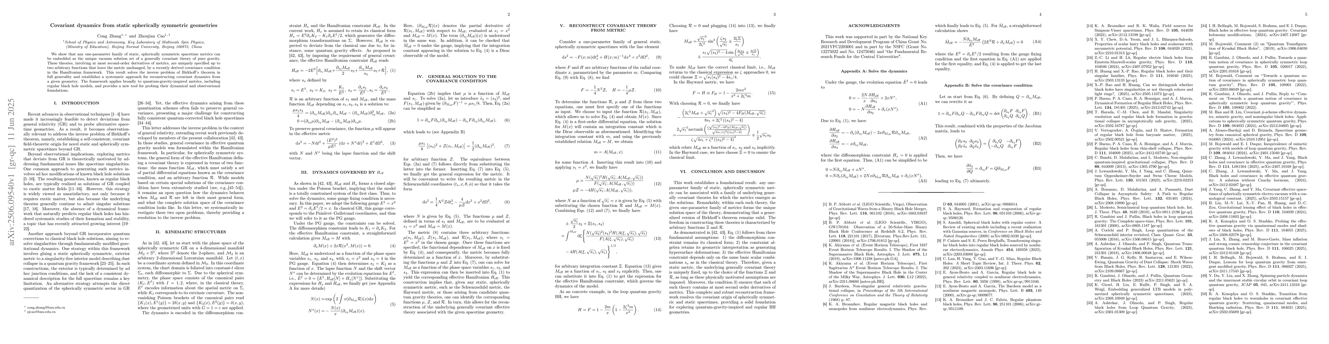 We show that any one-parameter family of static, spherically symmetric spacetime metrics can be embedded as the unique vacuum solution set of a generally covariant theory of pure gravity. These theories, involving at most second-order derivatives of metrics, are uniquely specified up to two arbitrary functions that leave the metric unchanged, by a recently derived covariance condition in the Hamiltonian framework. This result solves the inverse problem of Birkhoff's theorem in full generality and establishes a systematic approach for reconstructing covariant dynamics from a given geometry. The framework applies broadly to quantum-gravity-inspired metrics, including regular black hole models, and provides a new tool for probing their dynamical and observational foundations.