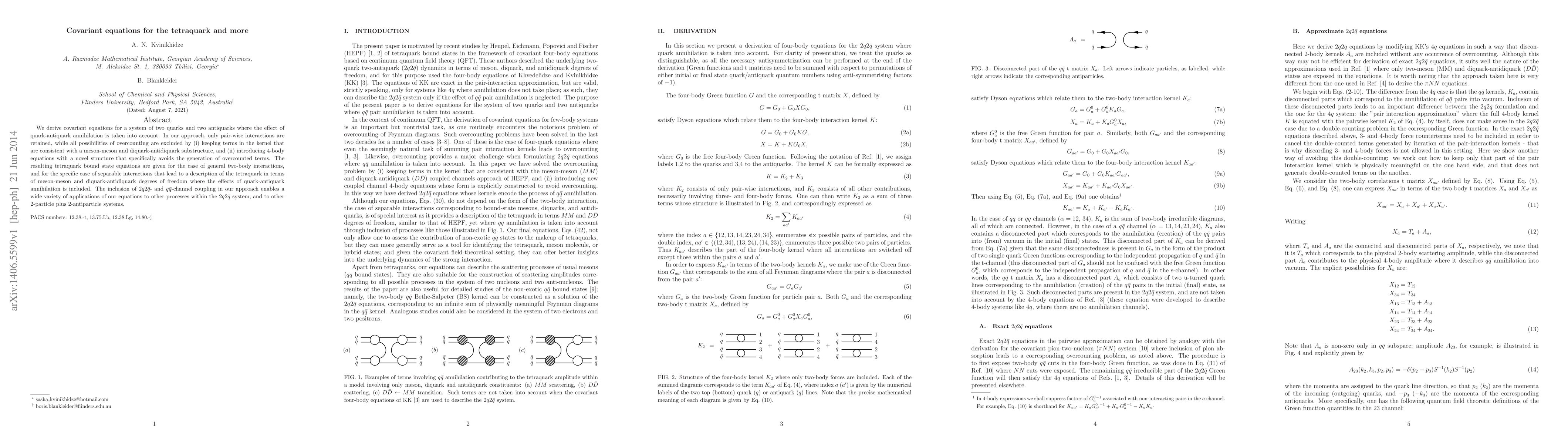 We derive covariant equations for a system of two quarks and two antiquarks where the effect of quark-antiquark annihilation is taken into account. In our approach, only pair-wise interactions are retained, while all possibilities of overcounting are excluded by (i) keeping terms in the kernel that are consistent with a meson-meson and diquark-antidiquark substructure, and (ii) introducing 4-body equations with a novel structure that specifically avoids the generation of overcounted terms. The resulting tetraquark bound state equations are given for the case of general two-body interactions, and for the specific case of separable interactions that lead to a description of the tetraquark in terms of meson-meson and diquark-antidiquark degrees of freedom where the effects of quark-antiquark annihilation is included. The inclusion of $2q2\bar{q}$- and $q\bar{q}$-channel coupling in our approach enables a wide variety of applications of our equations to other processes within the $2q2\bar{q}$ system, and to other 2-particle plus 2-antiparticle systems.