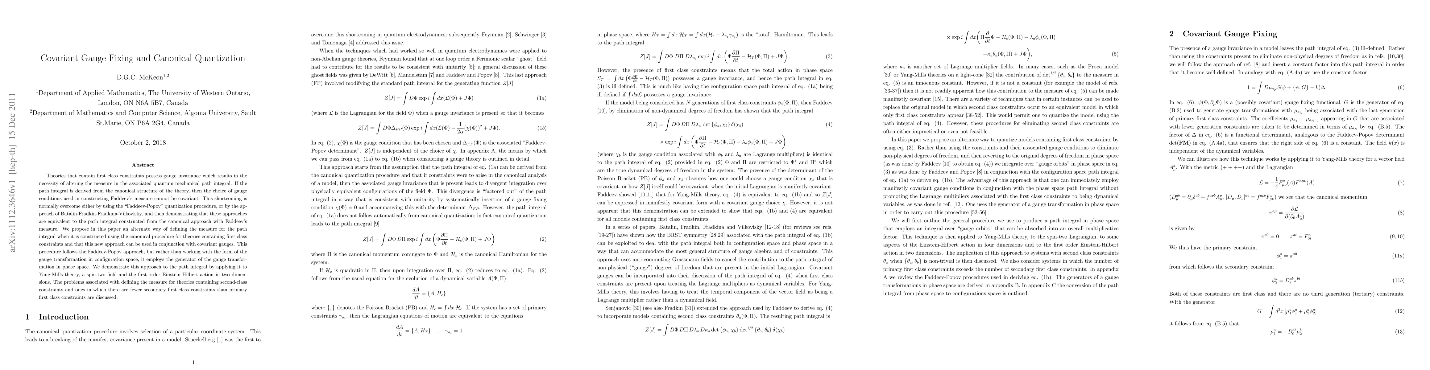 This paper proposes a novel method for defining the measure in the path integral for theories with first-class constraints, using covariant gauges and the generator of gauge transformations in phase space. It demonstrates the approach through applications to Yang-Mills theory, a spin-two field, and the Einstein-Hilbert action in two dimensions.