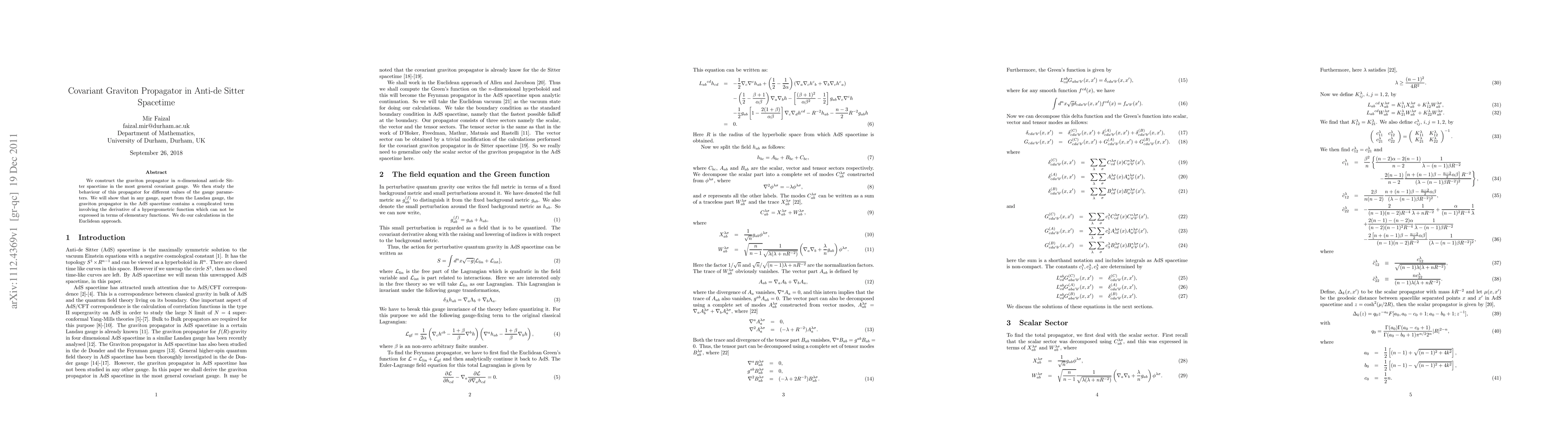 Summary: The research constructs the graviton propagator in $n$-dimensional anti-de Sitter spacetime in a covariant gauge, revealing that most gauges produce a propagator containing a derivative of a hypergeometric function, which cannot be expressed in elementary functions, except for the Landau gauge. Calculations are performed using the Euclidean approach.