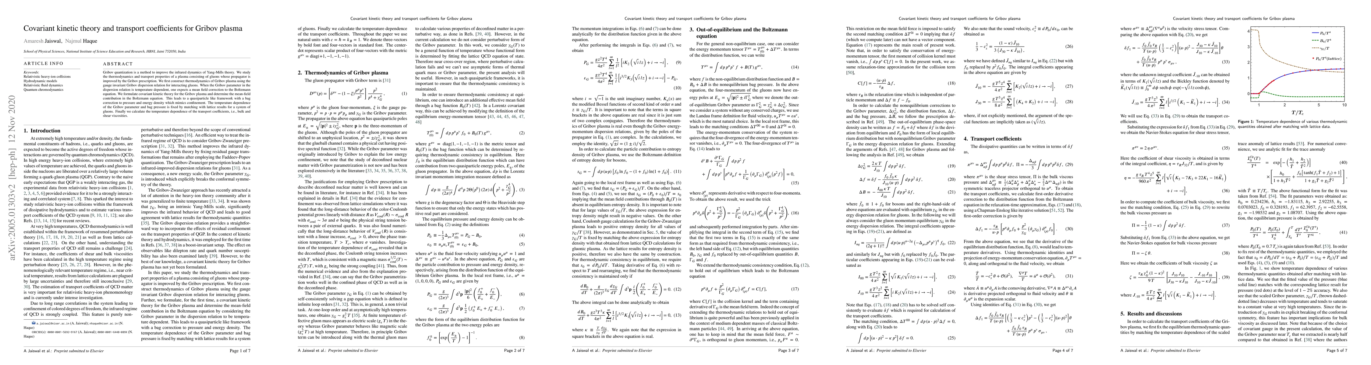 Gribov quantization is a method to improve the infrared dynamics of Yang-Mills theory. We study the thermodynamics and transport properties of a plasma consisting of gluons whose propagator is improved by the Gribov prescription. We first construct thermodynamics of Gribov plasma using the gauge invariant Gribov dispersion relation for interacting gluons. When the Gribov parameter in the dispersion relation is temperature dependent, one expects a mean field correction to the Boltzmann equation. We formulate covariant kinetic theory for the Gribov plasma and determine the mean-field contribution in the Boltzmann equation. This leads to a quasiparticle like framework with a bag correction to pressure and energy density which mimics confinement. The temperature dependence of the Gribov parameter and bag pressure is fixed by matching with lattice results for a system of gluons. Finally we calculate the temperature dependence of the transport coefficients, i.e., bulk and shear viscosities.