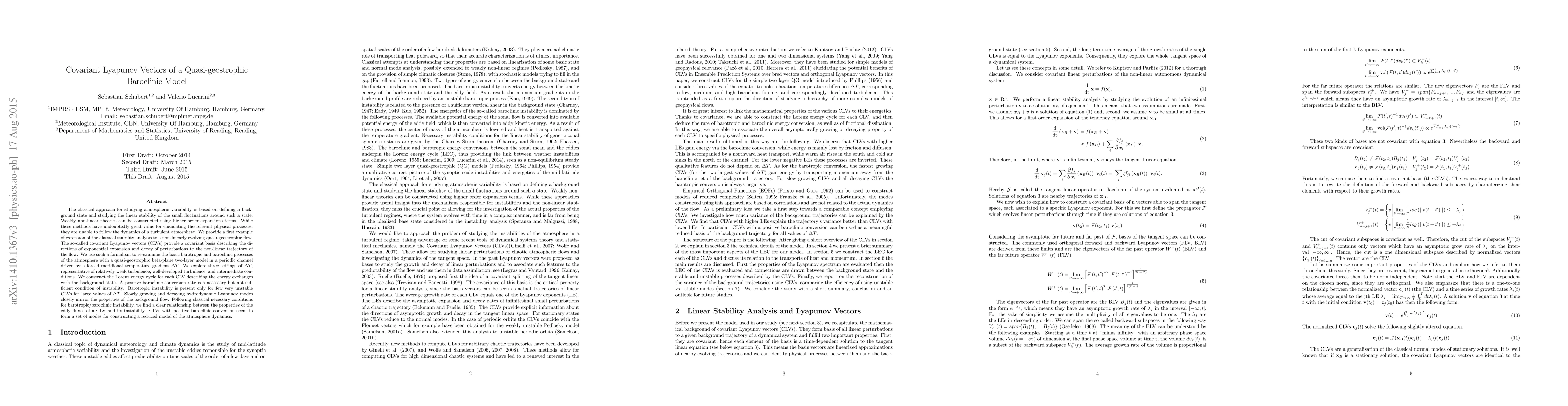This paper extends classical stability analysis to non-linear quasi-geostrophic flows using covariant Lyapunov vectors (CLVs) to explore instabilities and feedbacks in a two-layer model. It finds that CLVs with positive baroclinic conversion may form a basis for reduced atmospheric dynamics models.