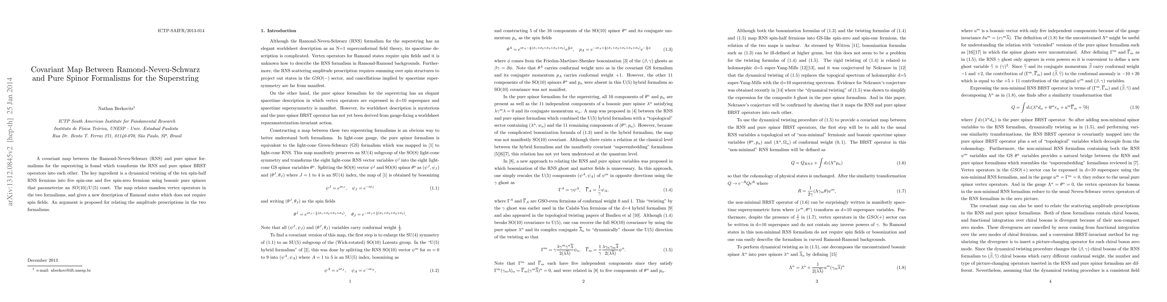 This research establishes a covariant map transforming the Ramond-Neveu-Schwarz (RNS) and pure spinor BRST operators for the superstring, using bosonic pure spinors to twist RNS fermions. It also connects massless vertex operators between the two formalisms and provides a new perspective on Ramond states without spin fields.