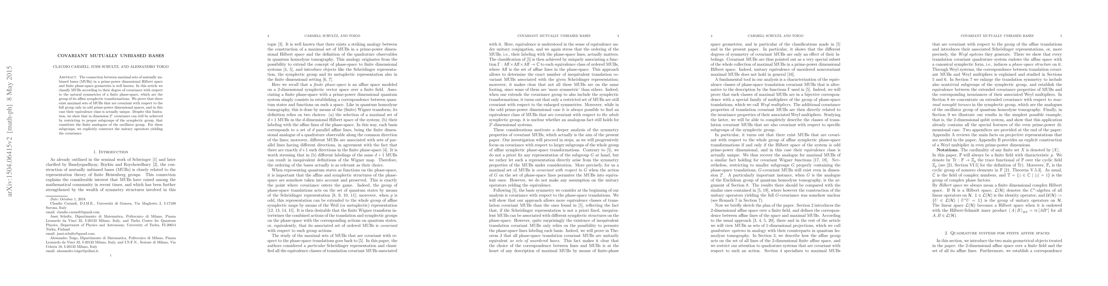 Researchers explore how maximal sets of mutually unbiased bases in high-dimensional spaces relate to symmetries of the phase space, finding that some unique covariance can only occur in odd prime-power dimensions, but even cases can be achieved through subgroups of the symplectic group.